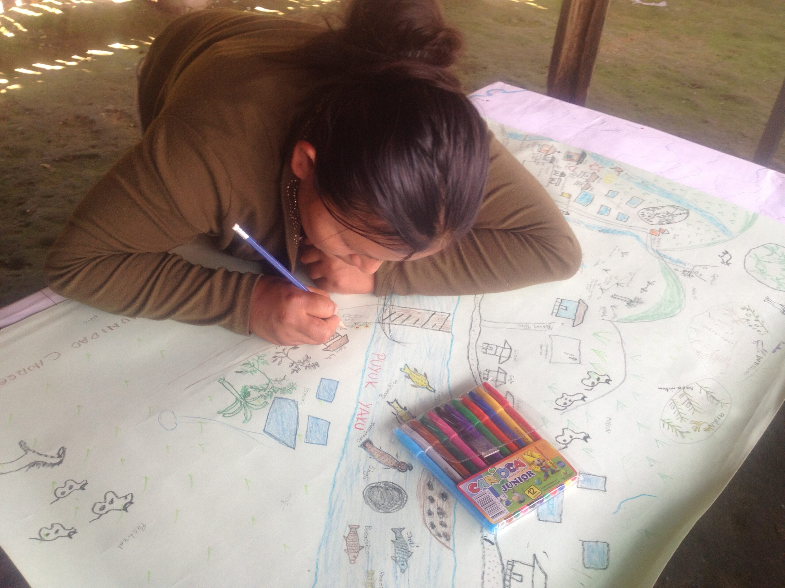 “Are we being the actors in mapping or being the subjects mapped?” was the dilemma that Kichwa people looked for elucidating. There is no simple way to answer it. However, considering that there is a shared role in the decision-making during the planning process, this process must rely on more generative and sensitive support beyond the ongoing colonialism context. Committing me during the “process” instead of only making “products” was my motivation and strategy for contesting mainstream planning. Informed then from my previous experience of work with indigenous people; participatory mapping was a suitable solution. This method can be flexible and adaptable to encounter the indigenous philosophy while drawing, chatting, and sharing with the families. Disregarding the aesthetics and accuracy of the map, I paid particular attention to the narratives and affects that couldn’t be represented on the map: ritual beings and their memories on the space. I then noticed the “spatial pluralism” in the maps, which can connect more than human elements. This plurality of the space comes from an indigenous ontology, which is rejected by Western planning, due to such pluralism cannot be captured, measured, and predicted in the same way that I did when using GIS in land-use changes.