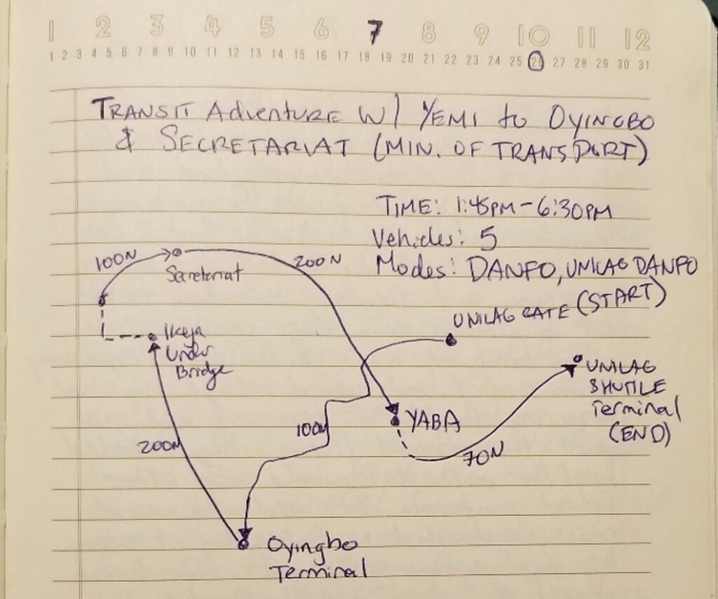 Lara.ng and the system it helps users access are both concrete manifestations of the concept of jugaad, a colloquial Hindi word that refers to grassroots innovations or making-do with the materials at hand (Prabhu & Jain, 2015). While Lara.ng represents a positive manifestation of this concept, the operations of the danfo system itself displays the dark, exploitative side of jugaad. Institutional corruption forces danfo drivers to be creative in their daily quest to maximize profits, applying jugaad and tacit knowledge to improvise routes and keep their vehicles running by any means necessary. The way jugaad works may result in an “aesthetic of chaos” (Rem Koolhaas qtd. in Agbiboa, 2016) to an outsider, but it has real impacts on the actors embedded in this system: for example, 99 percent of informal transit workers suffer from hypertension (Akoni, 2013).