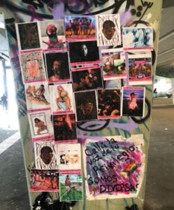 In addition, La Tianguis brings a new perspective to queer placemaking scholarship, which has tended to privilege white cisgender gay men and material-constant sites such as gay bars and nightclubs (Unipan 2021) while overlooking placemaking initiatives by low-income, racialized QTGNC folks. Unipan (2021) identifies two properties that develop different communities: “material/immaterial,” which refers to whether a space is physical or not, and “constant/transient,” which describes if a community has complete ownership of a space or instead gathers episodically. Originally, La Tianguis could have been understood as material-transient, but through its increasing popularity and graffiti, it has become material-constant as the place “retains the community’s identity even when members are not present” (Unipan, 2021). La Tianguis Disidente thus represents a different type of queer placemaking that we might call marica placemaking, led by racialized QTGNC people as they challenge mainstream queer placemaking efforts and seek to develop new and independent futures.