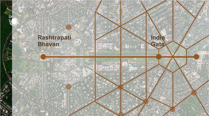 Lutyens’ Delhi: Spatial layout highlighting radial patterns, grand vistas and axial symmetry. Source: Author Generated.