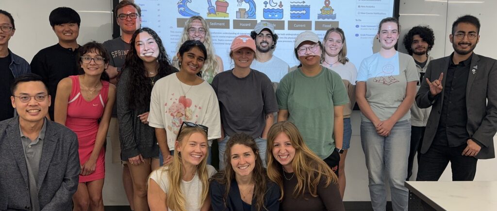 Teaching ”I cannot teach anybody anything; I can only make them think.” -Socrates 2024-2025 UT CAEE Faculty Teaching Award COURSES CE 319F Elementary Fluid MechanicsThis course provides an introduction to the fundamental principles of incompressible fluid mechanics, a core subject essential to civil, architectural, and environmental engineering. Students will learn how fluids behave under various conditions and how fluid forces influence the design and performance of engineered systems and natural environments. Topics include fluid properties, hydrostatics, conservation of mass, energy, and momentum, dimensional analysis and similitude, laminar and turbulent flow, boundary layers, and pipe and channel flow. Emphasis is placed on developing both physical intuition and analytical problem-solving skills through theoretical discussions, worked examples, and practical applications. By the end of the course, students will be able to identify, formulate, and analyze fundamental fluid flow problems relevant to engineering practice. The knowledge gained in this course forms the foundation for advanced study in hydraulics (CE 356), water resources, building environmental systems, and environmental transport processes, and provides essential tools for addressing real-world challenges in fluid systems. CE377K/397 Data Science in CAEE This course will take you on a journey through the fundamental concepts, principles, and hands-on experience in data science. Whether you are an undergraduate or a graduate student, this course is perfect for anyone interested in gaining expertise in data science. Throughout this course, you will explore the foundations of data science, including data structure, data cleaning & transformation, data visualization, machine learning, and data science ethics. By the end of this course, you will have acquired the skills necessary to apply data science techniques to various civil, architectural, and environmental engineering challenges. We will use the Python programming language, which is one of the most popular languages in the data science field, throughout the course. With a focus on hands-on experience, you will have ample opportunities to practice your coding skills and apply your knowledge to real-world problems. CE377K/397 Coastal Engineering This course is designed to provide a comprehensive understanding of coastal engineering, making it suitable for both undergraduate and graduate students. It covers fundamental concepts, principles, and practical experience in coastal engineering. This course will give you insights into the physical characteristics of coastal environments and their real-world applications in engineering projects. Topics covered include basic wave mechanics principles, surf-zone processes, littoral and sediment processes, shoreline features, astronomical tides, coastal hazards, and the functional design of coastal structures. 2025 Spring: Coastal Engineering 2024 Fall: Data Science in CAEE 2024 Spring: Coastal Engineering 2023 Fall: Data Science in CAEE 2023 Spring: Data Science in CAEE