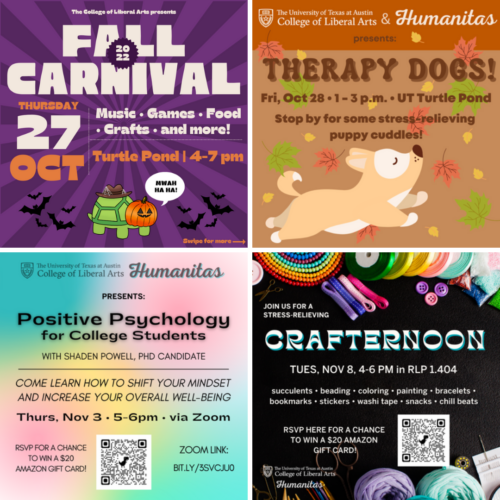 Click here to find out about all of our Humanitas and wellness offerings, and don’t forget to follow us on Instagram @liberalartsut! Hope to see you there.