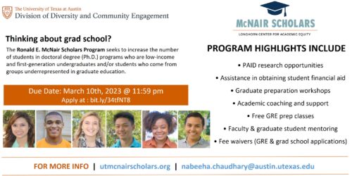 Applications will be due on March 10. Applicants can submit their resume and cover letter via Handshake, and one letter of recommendation directly to lincoln.howard@austin.utexas.edu.