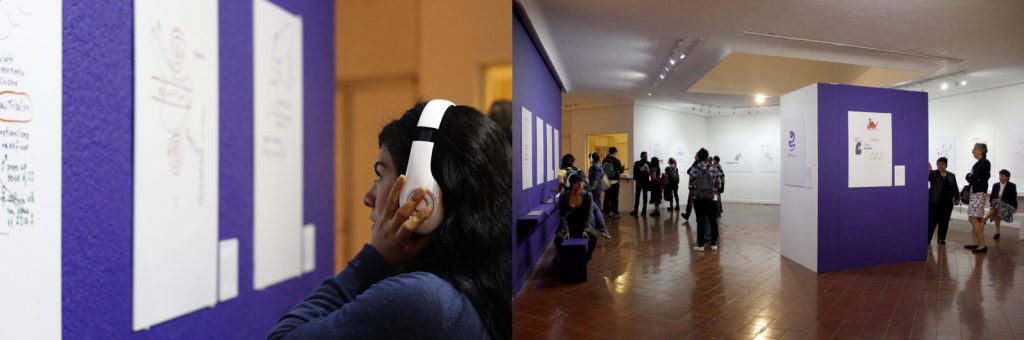 Entre Palabra e Imagen: Galería de Pensamiento de Gloria Anzaldúa traveled to Mexico City in March 2016, where it opened at Casa de Cultura de la UAEMéx, a cultural center of the Universidad Autónoma del Estado de México, followed by Centro Cultural Border, a nonprofit space promoting contemporary arts and culture. This was the first display of Anzaldúa’s images south of the Río Bravo/Rio Grande, and it coincided with the translation into Spanish of Borderlands/La Frontera (2015) by the Universidad Nacional Autónoma de México (UNAM) for a Mexican and Latin American readership. UNAM collaborated to bring the exhibition, and hosted an opening talk by Julianne Gilland, artist and art critic Mónica Mayer, and art historian/critic Karen Cordero at the Museo Universitario de Arte Contemporáneo (MUAC) on the eve of the opening. Artist and scholar Nina Höchtl and professors Coco Gutiérrez-Magallanes and Rían Lozano curated the exhibition, adapting it for a Mexican audience. Höchtl, Gutiérrez-Magallanes, and Lozano asked: