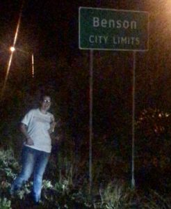 We got into Arizona around 2 a.m. and I asked the truck drivers if we could make a quick pit stop. Around 3:30 a.m. Troy pulled over on the side of the road so I could take a photo next to the Benson, Arizona, city limit sign. We kept on trucking (pun intended) until right before sunrise and right before the California border so that Troy and Rhonda could make a shift change.