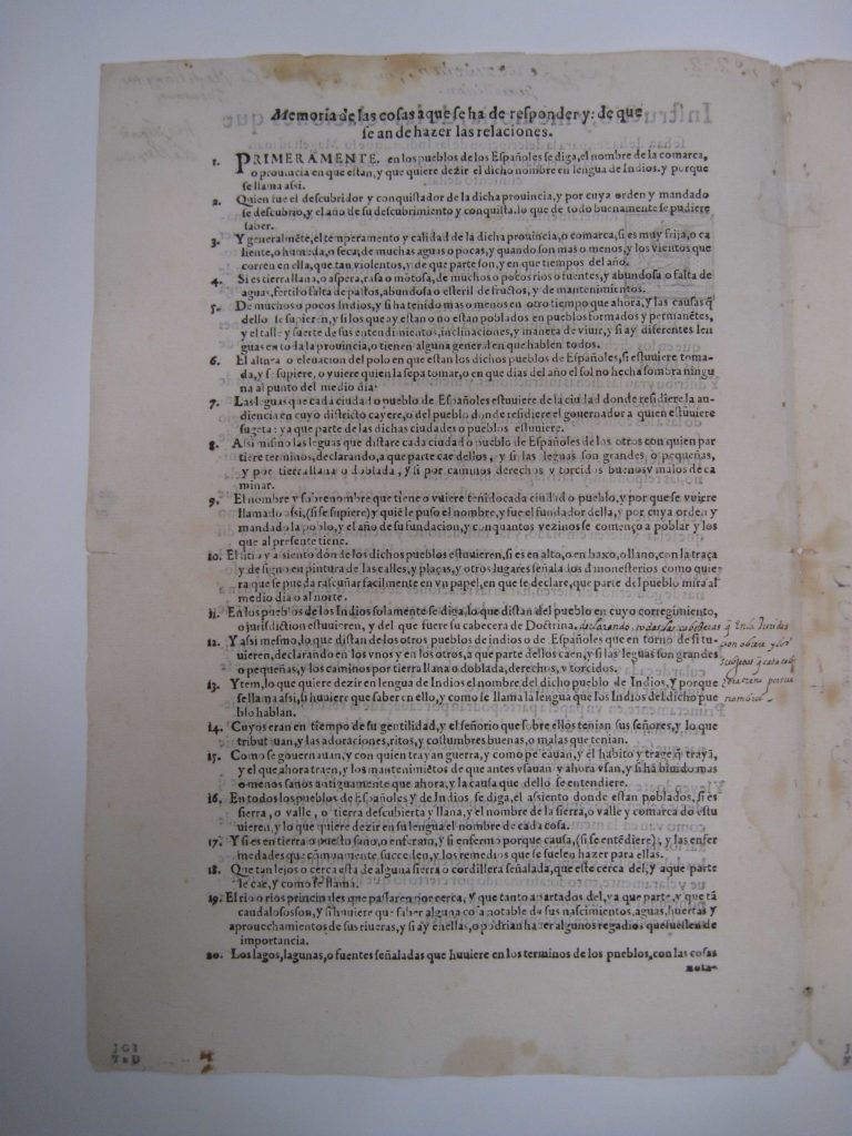 Relaciones Geográficas: Sample Questions from the Spanish Crown