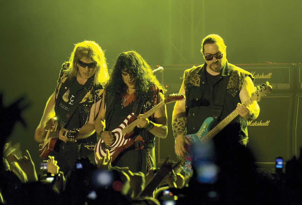 Twisted Sister in concert. From left: Jay Jay French, Eddie Ojeda, and Mark “The Animal” Mendoza.