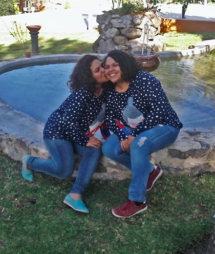Fátima: Nuestra relación como hermanas gemelas ha sido una rueda de la fortuna, una experiencia mágica, pero también dura. Las comparaciones, las expectativas, la falta de individualidad en los círculos comunes son cosas que marcan nuestra relación, que la hacen compleja. Juntas o por separado hemos aprendido a lidiar y resolver estos desafíos, y creo que lo hemos hecho bien. A pesar de nuestra semejanza física, y de nuestra afinidad profesional actual, somos personas muy distintas. Como todos los hermanos (creo) tenemos intereses que compartimos, como la opción de trabajar en favor de personas en situaciones de opresión (ella personas en migración, yo personas indígenas). Pero en otras cosas hemos tenido opciones muy diversas, por ejemplo, mientras yo estudiaba derecho ella estudiaba artes plásticas, luego fotografía, luego antropología. Cada quien tenía vidas separadas, amistades distintas, aunque en realidad creo que nos seguíamos los pasos. Ambas nos casamos el mismo año, y estamos en el mismo doctorado, así que creo que seguimos gestando la vida juntas.