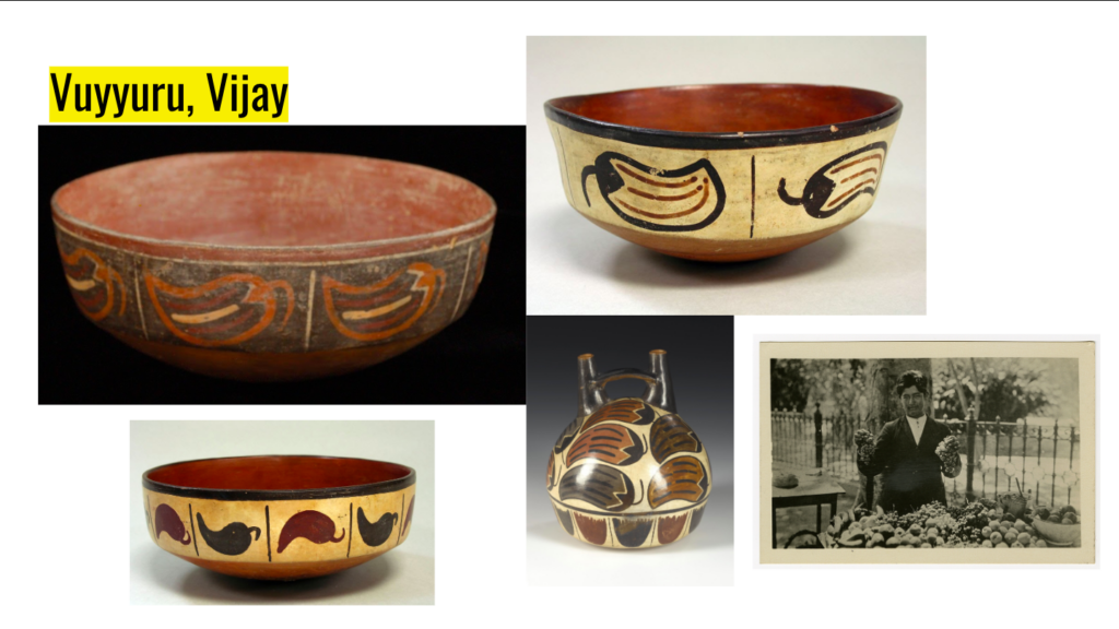 Students were divided into teams of four for the final project. Each team had to research objects in the UT collection from two different pre-colonial Andean groups—the Chimu and the Nasca. They then had to compare the objects they chose to an object from another museum collection. To provide context for visualizing the environments of Peru, Runggaldier selected images from the Benson’s Hispanic Society of America Postcard Collection, which has been digitized, described, and mapped by School of Information graduate student Elizabeth Peattie, who is the LLILAS Benson Digital Scholarship and Special Collections intern. Three other indispensable contributors to the success of this project were Brianna Crockett, collections assistant and Art and Art History undergrad, who assisted in the compilation and description of digital assets; Katy Parker, Humanities Liaison Librarian for Fine Arts, who provided research support for students throughout the semester; and Nicole Payntar, doctoral student in the Department of Anthropology, who designed assignment grading criteria and rubrics for research and digital project components.