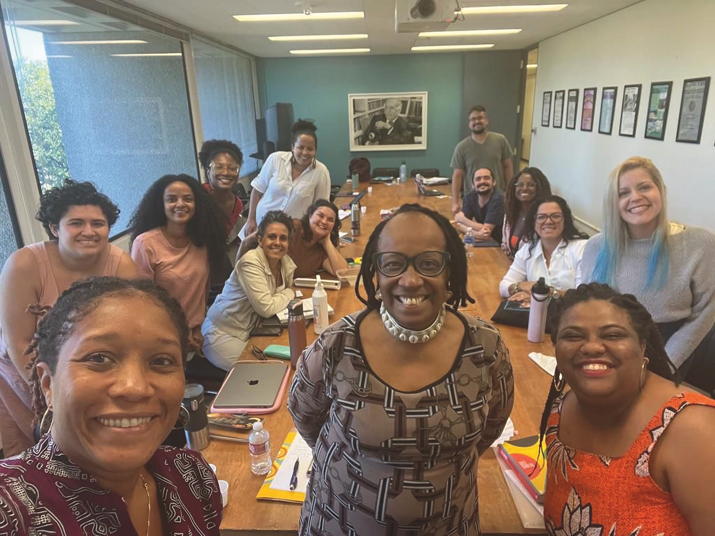 BEING A GRADUATE STUDENT is not easy, especially in a prestigious program such as the Teresa Lozano Long Institute of Latin American Studies at the University of Texas at Austin. In spring 2023, the authors, along with fellow Brazilian students, were talking about the challenges with Dr. Christen Smith, our adviser, and she said, “I have a gift for you.” The gift was Dr. Sueli Carneiro, who would come to LLILAS as Tinker Visiting Professor in the fall of 2023. The news surprised and amazed us.