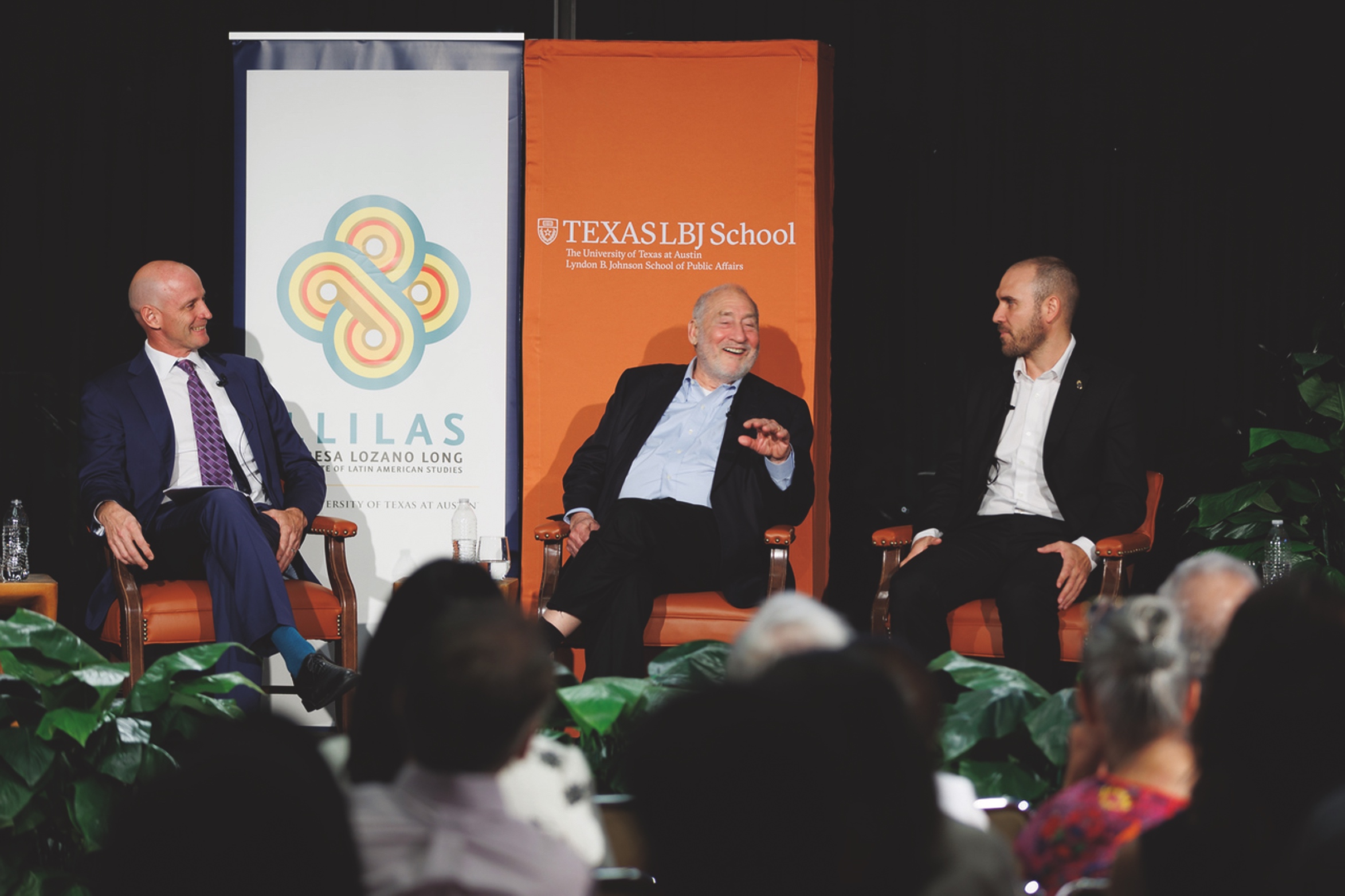 In spring 2024, LLILAS hosted Nobel Laureate in Economics Joseph Stiglitz and former Minister of Economy of Argentina (2019–2022) Martín Guzmán. Their public conversation, moderated by JR DeShazo, Dean of the Lyndon B. Johnson School of Public Affairs, focused on topics that have been central to their trajectories as academics, public intellectuals, and policymakers: the structural basis of the global debt problem and the prospect of generating sustainable and fair economic development in Latin America and the world.