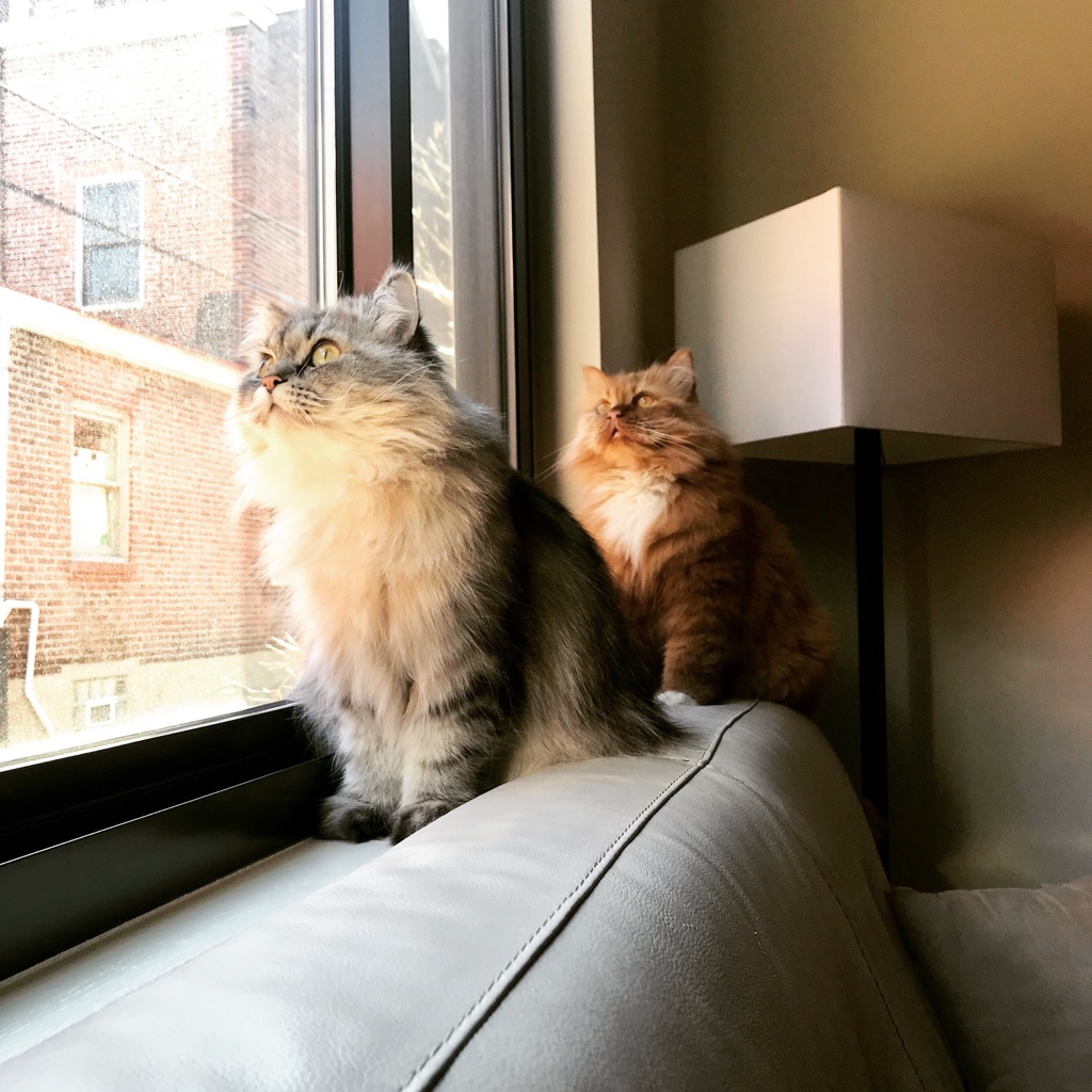 Jade and Rufus are the most senior but least productive members of the team. They enjoy naps, treats, and making guest appearances in Zoom meetings.