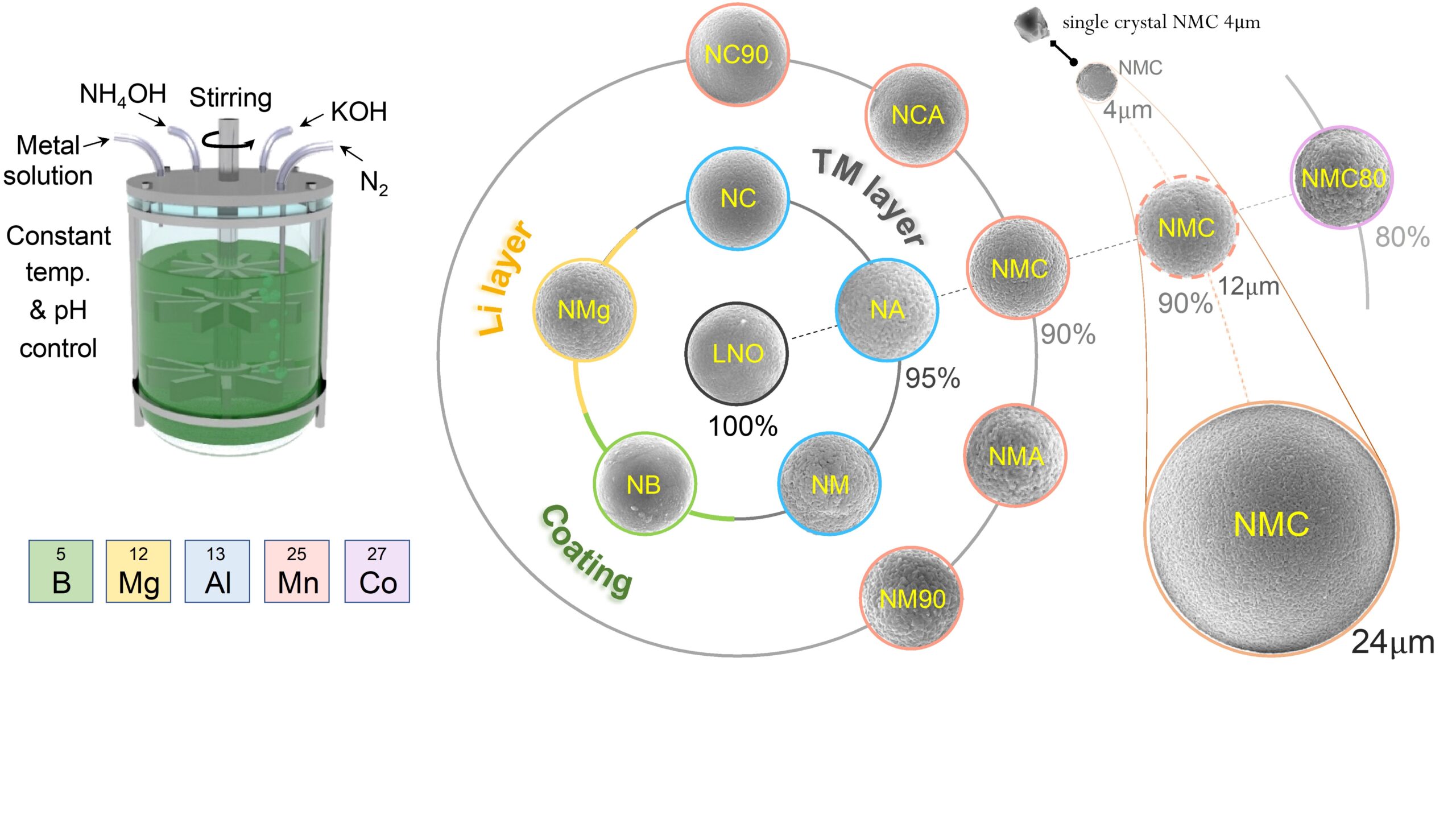 Research As the battery industry is expanding, cost and supply-chain challenges will be the dominant factor to tackle. Our targeted, solution-driven research is centered on the development of new materials for batteries with a good balance between basic science and applied science, encompassing the following: Design of new electrode and electrolyte materials Novel chemical synthesis and processing approaches Advanced structural, chemical, and surface characterization Chemical, physical, and electrochemical property measurements Fabrication and evaluation of prototype batteries Fundamental understanding of relationships among structure, composition, properties, and performance Lithium-ion Batteries: Lithium-ion batteries have aided the revolution in portable electronics. They are now on the verge of transforming the transportation sector and grid storage of electricity. Our research is focused on eliminating or reducing the expensive and scarcely available cobalt and increasing the energy density through higher nickel contents in the cathode and incorporating silicon into graphite, while maintaining adequate cell safety. Metal-sulfur Batteries: Sulfur is earth-abundant and supply-chain-friendly with 10 times higher charge-storage capacity than the oxide cathodes used in lithium-ion batteries. Unfortunately, metal-sulfur batteries are met with numerous challenges. We are engaged in overcoming the challenges with novel electrode architectures, electrocatalysts, electrolytes, metal-anode stabilization, molecular engineering of polysulfides, and robust electrode-electrolyte interphases with necessary cell-assembly parameters in pouch cell configurations to make them commercially viable. Sodium-ion Batteries: Sodium is earth-abundant and sodium-ion batteries offer a potential low-cost replacement for lithium-ion batteries. However, they are in their infancy. Our research is engaged in developing new cathode compositions with doping and surface modification to realize long cycle life, while developing a fundamental understanding of the complexities associated with cathodes, hard carbon anodes, cell dynamics, and safety. All-Solid-state Batteries: All-solid-state batteries with a solid electrolyte and solid electrodes are the holy grail of rechargeable batteries as they can offer higher energy density and better safety. However, they are challenged with poor interfacial charge transfer. Our research is focused on realizing optimized interphases with facile charge transfer. Aluminum Anodes: Aluminum foil anodes to replace graphite anodes in lithium-ion batteries are appealing as they can lower the cost, increase energy density, and enhance safety. Our research is focused on understanding the structural transformations and identifying the associated failure mechanisms through an interdisciplinary approach that integrates metallurgy and electrochemistry. Questions? Contact Webmaster.Updated on 10/03/2025