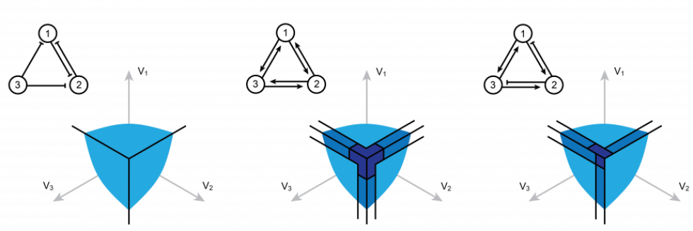 figpath1_1 figpath2_1 figfpt1_3 figfpt2_0 figconstruct_3 figraster fignetwork figsketch figsketch2 figsim_0 Welcome the the MathNeuro website! Our group is part of the Department of Mathematics and the Department of Neuroscience at UT Austin. We are broadly interested in developing new theoretical approaches to better understand information processing in the brain. Working in close collaboration with experimental laboratories, we utilize techniques from stochastic dynamics, network theory, and information theory to analyze biophysically inspired models of neural networks. We are accepting applications for postdoctoral positions as well as graduate students within the departments of Mathematics and Neuroscience. The above movie illustrates a Monte-Carlo algorithm that efficiently computes the first-passage time of a linear diffusion process with a straight boundary. Variations on this algorithm allow us to study numerically the distribution of spiking times for model neurons driven by fluctuating inputs. The above movie illustrates the population dynamics of microbial cell types competing for three externally provided resources in a one dimensional space (top: resource concentrations, bottom: cell type populations). Competition between metabolic variants yields stationary states where consortia of distinct cell types achieve the maximum rate of biomass production. Recent Publications Global solutions with infinitely many blowups in a mean-field neural network Characterization of blowups via time change in a mean-field neural network Multistability in the replica-mean-field limit of spiking neural networks Replica-mean-field limits Fragmentation-Interaction-Aggregation Processes A structured scaffold underlies activity in the hippocampus