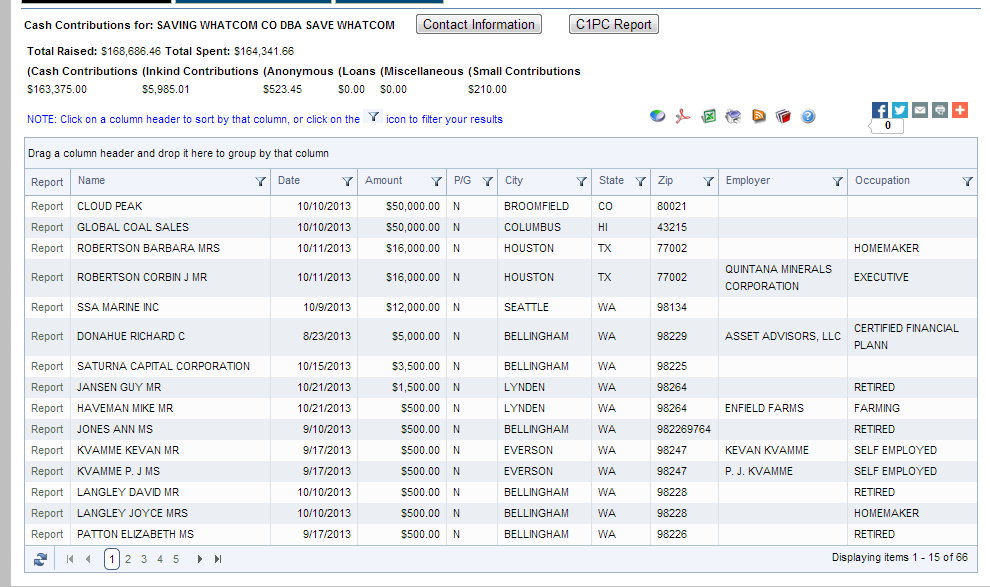 Contributions to Save Whatcom (pro-coal)