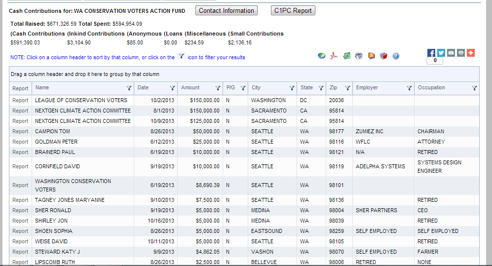 Cash Contributions to Washington Conservation Voters Action Fund (anti-coal)