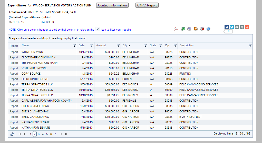 Expenditures for Washington Conservation Voters Action Fund (anti-coal)