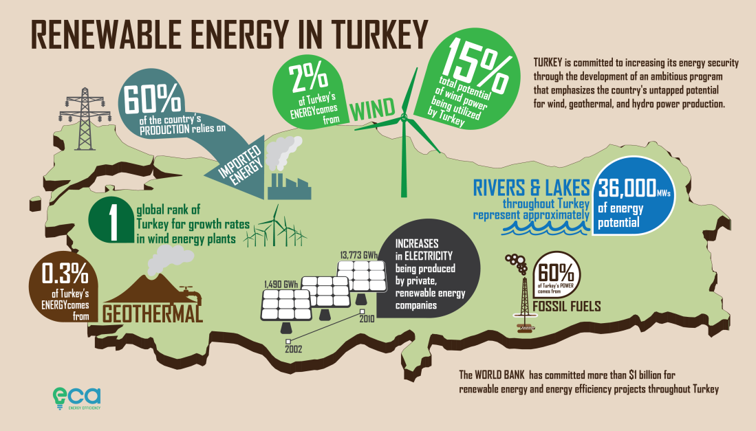 The Turkish government has been strongly promoting nuclear energy while renewable energy, such as wind, geothermal, wind, and solar, are left for private and foreign investors to take advantage of. In order to make renewable energy investments more appealing, Turkey passed a 2005 law which ensured that any renewable energy produced would be incorporated into the electricity grid with a feed-in tariff (FIT). However, due to a flat purchase rate across all renewable sources, as well as a rise in the standard energy price as compared to the tariff, this 2005 scheme has not generated as much buy-in as was anticipated.