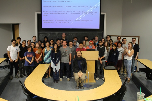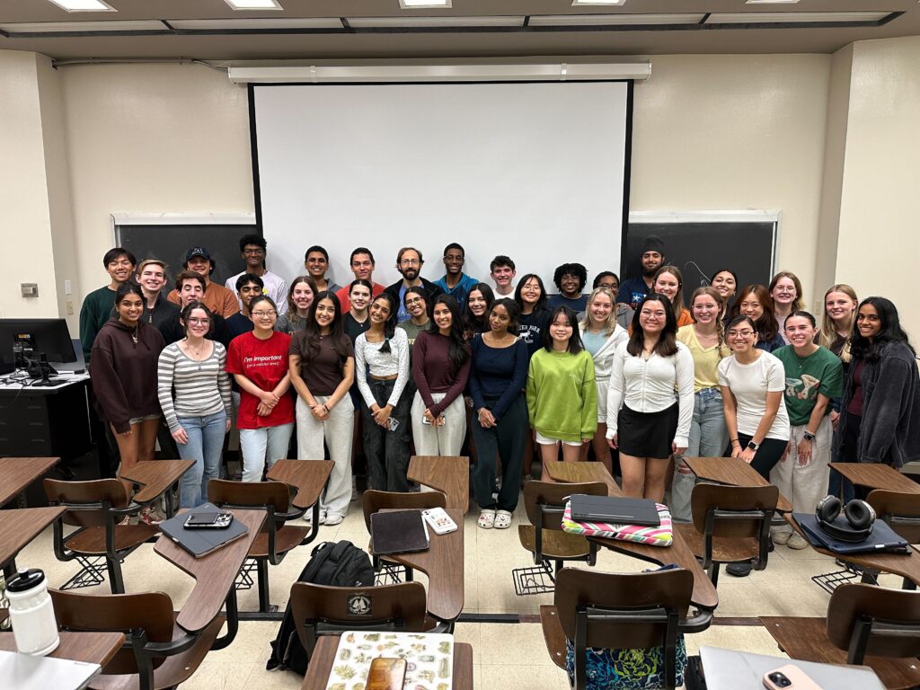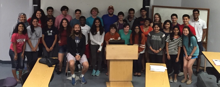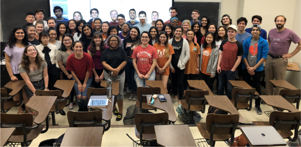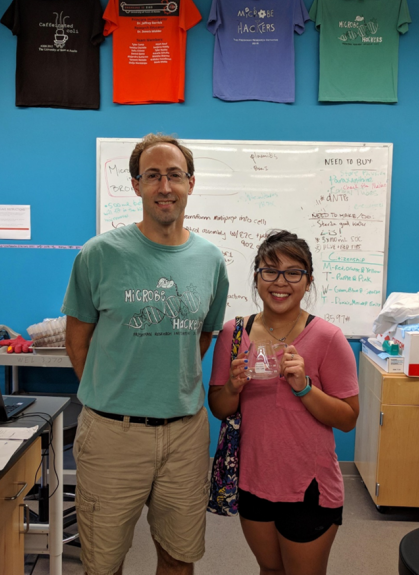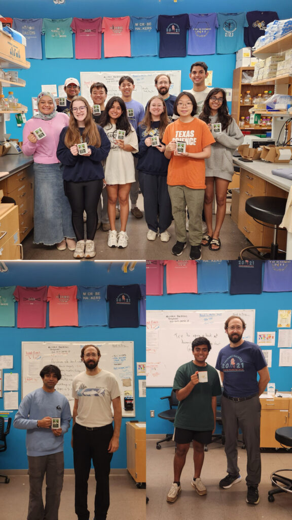 Culture Community With so many students going on to become mentors, our lab is built off knowledge that is passed down through “generations” of mentors and students. We form close connections as researchers and colleagues, but also as friends, keeping touch with each other long after graduation. If interested, you can follow us on Instagram (@microbe.hackers) and LinkedIn (https://www.linkedin.com/company/ut-microbe-hackers/ ). Trivia at Fall 2024 stream party – Team “Mishy Fishies”. Summer Research Every year, the Microbe Hackers lab is open during the summer. We normally start immediately after Memorial day and go for 8 weeks, ending in mid-to-late July. It is Professor Mishler’s goal to find as much space as possible for as many students as possible to conduct research with us over the summer. A few students receive summer fellowships, but most volunteer. In 2019, we had 16 of our freshmen stay with us during the summer, in addition to 8 of our returning mentors who conducted research and helped the younger students around the lab. Students are in lab for at least 20 hrs per week during this 8 week period. We have weekly meetings, focused on developing presentation skills, as well as other important skills: such as making professional figures and analyzing data. Every Friday, the students organize a lunch, either on the patio outside of lab or at a nearby restaurant. In addition, the lab had our first ever “trivia” event at the end of the summer. Teams were formed based on the benches students worked at and answered questions relating the our lab, science, Austin, and popular culture. Lunch with summer researchers, 2019. We had 16 of our rising sophomores and 8 older students with us during the summer. Every Friday, students had a group lunch, a tradition that has continued each summer, into 2025. “We Will EvoStab You,” the winning team of our first trivia event. I don’t know where they got their name from, but clearly they intimidated all of the other teams into letting them win! We have continued doing trivia through the academic year, once per semester. Stream Parties At the end of each semester, we have a stream party on the patio outside the lab. All the Microbe Hackers gather to enjoy potluck snacks and partake in fun team games concocted by the party-planning mentors, which have previously included trivia, cornhole, and charades (can you act out “evolutionary stability”?). Microbe Hackers 4 Life Microbe Hackers 4 Life is the title I give to students who join us in the spring, and then stay with the stream as mentors… until they graduate from UT Austin. In 2018, our first Microbe Hacker 4 Life graduated. In 2019, five more students received this title. Our appreciation for these students is hard to fully explain. These rare students have spent countless hours researching and/or mentoring younger students. They have taught our younger students techniques, gone over concepts, given feedback on papers, helped to run the lab, helped to clean the lab, and most importantly established a friendly, nurturing environment for future Microbe Hackers. Upon graduating, these students receive a small token of my appreciation for their efforts, normally an item somehow related to their time with us. All of our mentors do a tremendous service for our community, whether they are with us for one semester or five. On behalf of the entire Microbe Hackers lab, thank you all so much for being with us! First Microbe Hacker 4 Life. Hannah, Summer 2018 with Dr. Mishler. Spring 2019. David, Mah-ro, and Zach on the left. Jen and Matt on the right. 2021 MH4L. Emily, Michael, Chau. 2021 MH4L. Anna, , Roshni. 2022 MH4L. Luciano, Jorge, Annabelle. 2022 MH4L. Anna, Abby, Mina, Michael, Riya. 2023 MH4L. Jorge, Sophie, Jayden, Aneesa, Cristhy, Alan, Ren. Spring 2024. Peyton, Eleanor, Aalaysiah, Jessica, Tyler, Maya, Henry, Harlene. 2025 MH4L Top: Shahd, Jay, Anna, Kylan, Riya, Neil, Kaylee, Sandy, Vishy, Sohani. Bottom left: Avyay. Bottom right: Rohan Course Photos 750px-Microbe_Hackers_Class_Photo_2015 Class photo from Spring 2015. Our first cohort. 600px-Class_Photo_2016-1-scale Class photo from Spring 2016. 2018 Where else would everyone be, but in the lab? Spring 2018 Microbe Hackers. 2019 Class photo from Spring 2019. 2020 microbe hackers Class photo from Spring 2020. Microbe Hackers Sp2022 Photo Class photo from Spring 2022. IMG_2894 Class photo from Spring 2023. IMG_8210 Class photo from Spring 2024. IMG_7495 Class photo from Spring 2025