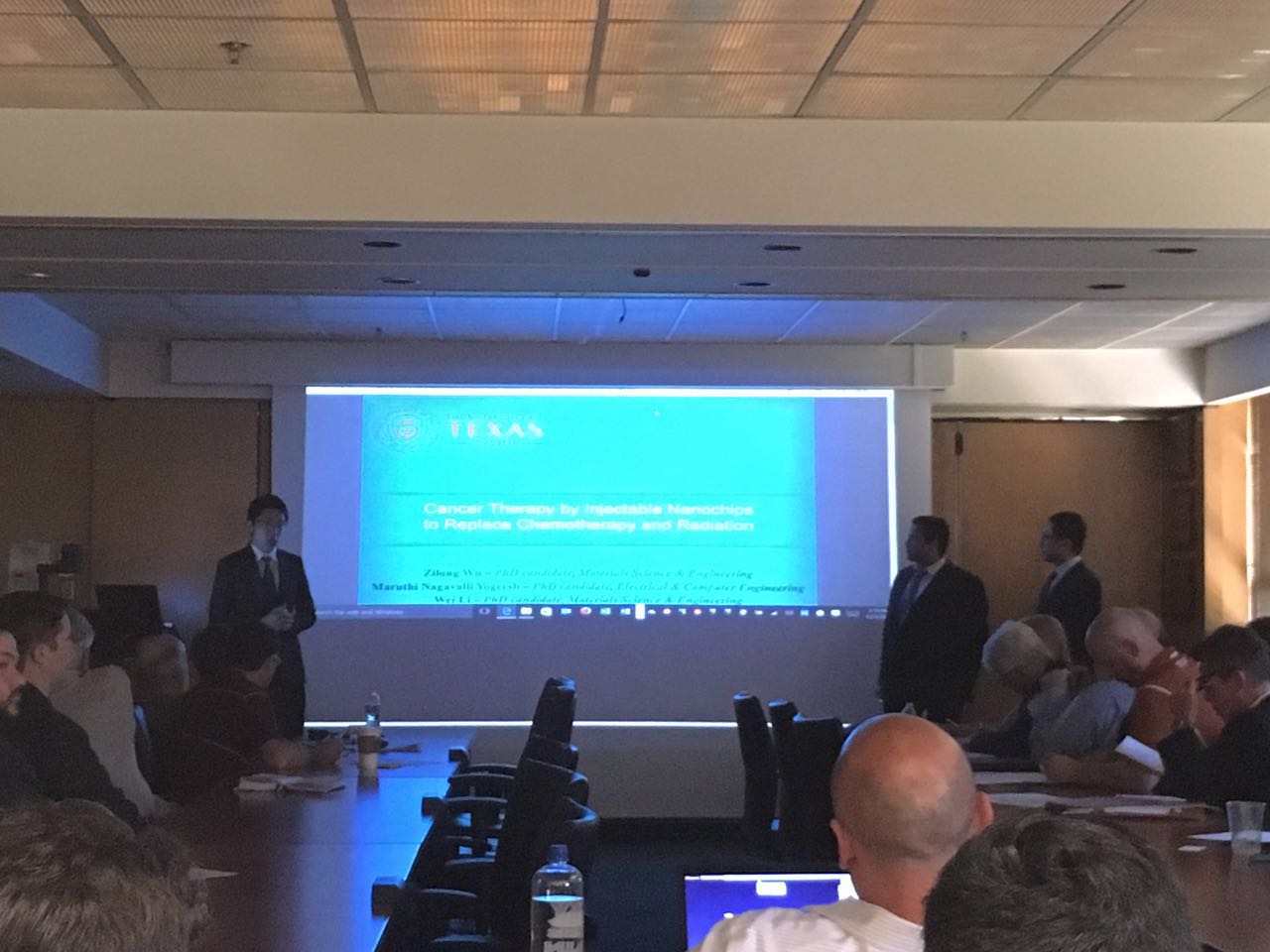 PhD students (Zilong, Maruthi and Wei ) presenting research idea on “Nanophotonic chip for treatment of cancer” at UT Idea to product (I2P-2017) event.