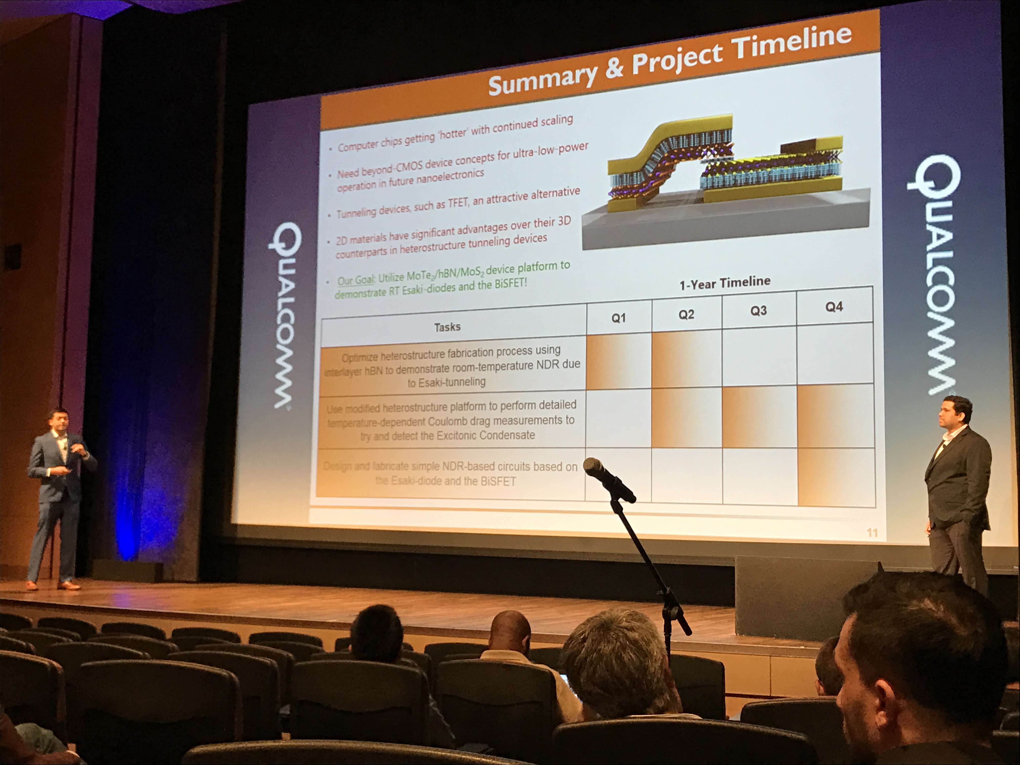 PhD students, Amritesh and Maruthi, presenting their proposal titled “Ultra-Low-Power Devices based on Van der Waals Heterostructures” at the 2017 Qualcomm Innovation Fellowship Finals held at Qualcomm’s World Headquarters in San Diego, CA