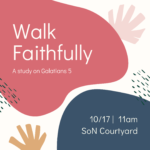 October 14, 2019, Filed Under: UncategorizedWalk Faithfully The last section in our Act, Live, Walk series! We’ll be discussing what Bible study series to do next this week, so bring your feedback!