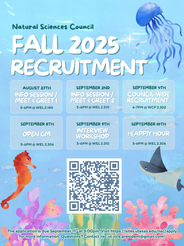 The Natural Sciences Council application for Fall 2025 is now closed. Please check back next semester for our Spring 2026 application!