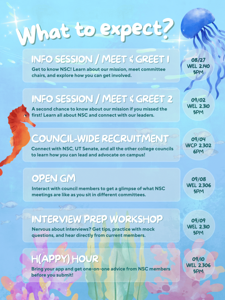 Questions about recruitment or our application process? Contact the VP at nsc.ut.vice.president@gmail.com!