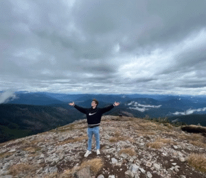Thomas McDowell, ’26 (he/him), is OUTLaw’s Persident. Thomas came to law school to improve his arguing skills. His favorite queer TV show is Queer as Folk, and a fun fact about Thomas is that he once cliff-jumped into Crater Lake!