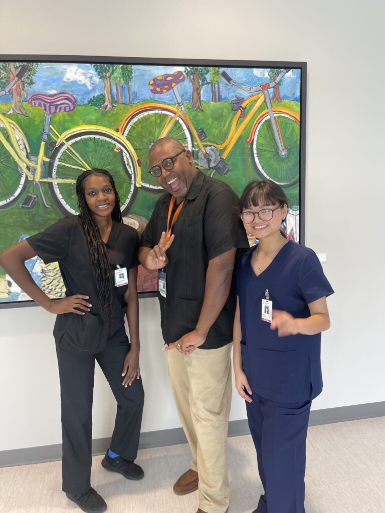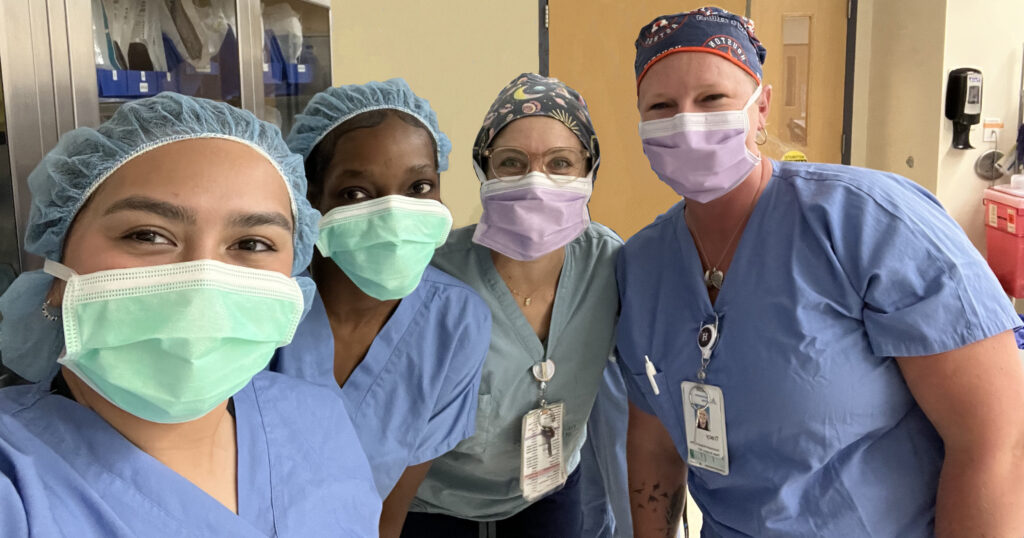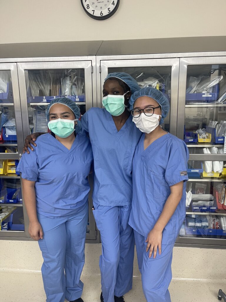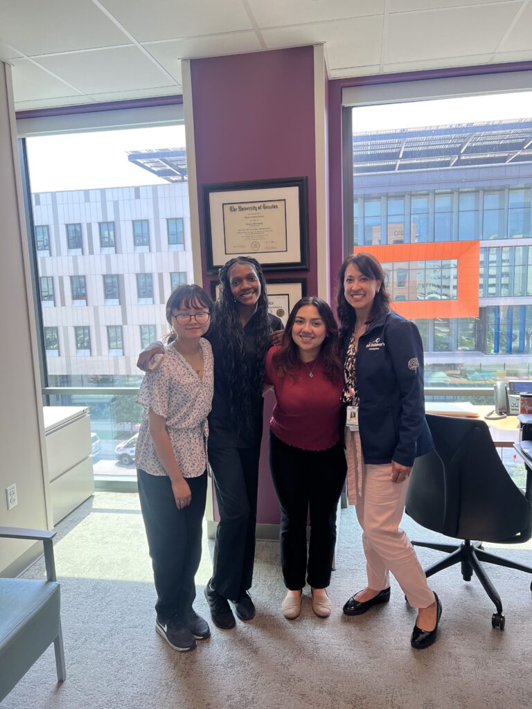 August 19, 2023, Filed Under: carousel, NewsPediatric Neurosciences Sponsors Sixth Annual Women in Neuroscience Internship May Tun, Emanuela Ilboudo, Karen Ramos, and Rosario DeLeon, PhD WiNterns Karen Ramos, Emanuela Ilboudo, and May Tun Emanuela Ilboudo, Dave Clarke, MD, and May Tun This summer, 25 interns completed the sixth annual Women in Neuroscience (WiN) Summer Intensive internship program, supported by UT Austin’s Department of Neuroscience in the College of Natural Sciences and the Department of Neurology at Dell Medical School. WiN’s eight-week paid internship encourages high school seniors and college students from historically underrepresented backgrounds to pursue careers in neuroscience and neurology. WiNterns from Ann Richards School for Young Women Leaders, Huston- Tillotson University, and UT Austin’s College of Natural Sciences partner with faculty mentors, attend daily seminars to build professional development skills, gain clinical and lab experience, and present their research at the conclusion of the program. They also receive ongoing mentorship. Pediatric neuroscience faculty mentors this year included Audrey Brumback, MD, PhD (autism), Dave Clarke, MD (pediatric epilepsy), Rosario DeLeon, PhD (pediatric neuropsychology), and Elizabeth Tyler-Kabara, MD, PhD (pediatric neurosurgery). E. Steve Roach, MD, taught a half-day course on biomedical writing. “Being able to speak to numerous health care professionals gave me great insight into all the rewards and challenges of their careers,” said WiNtern Karen Ramos. “I gained so much knowledge from asking questions and seeing them treat patients. In addition, seeing men and women from different ethnic backgrounds excelling in their specialty is motivating. Now I know I can do this!” For more information on WiN, visit www.neurowomen.org or follow the organization on X @helloNeuroWomen. Karen Ramos, Emanuela Ilboudo, OR nurse Shannon Neely, RN, and surgical technician Tracy Losoya
