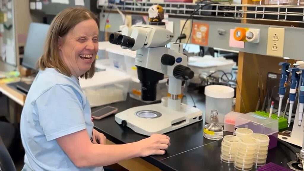 Can we stop neurodegeneration in Alzheimer’s disease? Alzheimer’s disease (AD) is inevitable in DS due to an extra copy of the Amyloid Precursor Protein (APP) gene. We have engineered C. elegans to mimic the key features of neurodegeneration observed in human AD by overexpressing a single copy of APP (Yi et al., 2017). We can now test with unprecedented speed, whether drugs prevent degeneration by simply counting fluorescent neurons through the worm’s transparent body (Modal et al., 2018). While mouse studies of AD typically take 2 years, the compact lifespan of C. elegans affords studies as short as 1 week. With our new powerful model of AD, we are learning why certain types of neurons are vulnerable in AD, how they die, and how APOE variants and TAU influence vulnerability to AD (Sae-Lee et al., 2020; Cardona et al., 2025). During these studies, we discovered a surprising role for EGL-1 – the trigger for apoptotic cell-death in all organisms. Rather than killing, we found that it unexpectedly protects neurons by triggering ejection of excess proteins and organelles in large membrane-bound blebs called exophers (Wu et al., 2025).