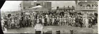 April 1, 2007, Filed Under: Exhibitions + EventsSelected items from the American Twenties Letter from Grace Hall Hemingway to Ernest Hemingway, July 24, 1920, “handed to him on 27 July 1920.” Hemingway (1899-1961) was 21 years old when his mother wrote him this letter (one page of her hand-written copy is shown) telling him that he was overdrawn in the bank account of his mother’s love. He had returned the year before from the war in Europe after having been wounded and decorated for valor by Italy. He was awarded the Nobel Prize for literature in 1954. A letter from F. Scott Fitzgerald to Blanche W. Knopf, received January 19, 1928. F. Scott Fitzgerald gave the Jazz Age its name. His fame was for many years based less on his work than his personality—the society playboy, the speakeasy alcoholic whose career had ended in “crack-up,” the brilliant young writer whose early literary success seemed to make his life something of a romantic idyll. In this letter to Blanche Knopf, the wife and publishing partner of Alfred A. Knopf, Fitzgerald, offering a taste of Roaring Twenties excess, conjugates the verb “to cocktail.” A letter from Blanche W. Knopf to F. Scott Fitzgerald, July 28, 1928. In her reply, Knopf greets Fitzgerald as “Dear Scotch.” E. O. Goldbeck (U.S., 1892-1986) 3rd Annual Bathing Girl Revue, Galveston Texas, ca. May 14, 1922. Modern gelatin silver print from original negative. Born in San Antonio, Goldbeck began his photographic career taking so-called “kidnapped” photographs, photographing passing subjects and then offering to sell the subjects copies of the image. Attracted to the panoramic group photograph because it offered a larger prospective market, he is best known for his work in this medium. Drawings by Norman Bel Geddes. This original Norman Bel Geddes drawing of a dancing couple became interior decoration for the New York City nightclub, Palais Royal Cabaret. ca. 1923. Courtesy of Bel Geddes Estate.