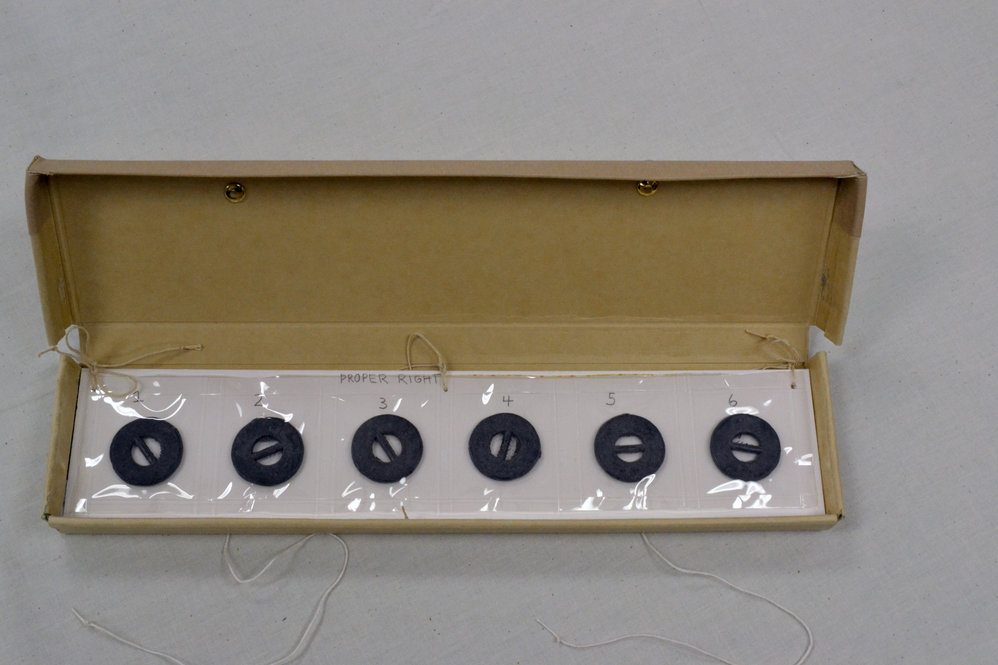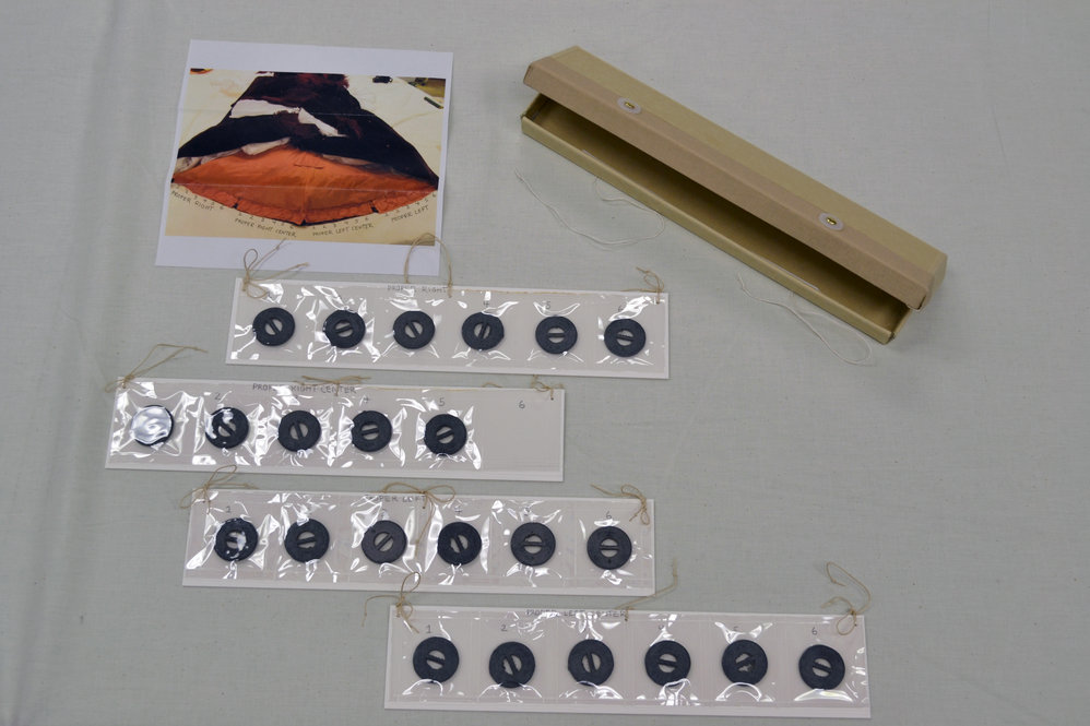 August 30, 2011, Filed Under: ConservationWhat was the repair process after removing weights from the "Gone With The Wind" burgundy gown? The Ransom Center has begun conservation work on the gowns from Gone With The Wind, and readers can follow the progress of the project on the Center’s website. Cultural Compass solicited questions from readers, and staff will answer a few of those questions in the coming weeks on this blog. Below, Jill Morena, collection assistant for costumes and personal effects at the Ransom Center, answers a question about the repair process after the conservation team removed weights from the burgundy ball gown. Question: Can you explain the repair process; i.e., how did you go about re-stitching the casings for the weights? (type of thread, hand- or machine-stitched?) Does that type of “tampering” significantly affect the item’s value? Or is the trade-off worth it in terms of the efforts to arrest further harm? What kind of a background do conservators have to be competent in textile preservation such as this? Answer: When a garment enters a museum or archive’s collection, the balance between preservation and access becomes an ongoing discussion. The garment has passed out of the private sphere and into a public institution, so questions of value shift from monetary and market value to cultural value and long-term preservation. It is the institution’s charge to preserve the garment for future generations and to make items available for public view. The institution must consider these two aims and continually make decisions that allow a garment to have a “second life.” The institution must make the preservation, condition, and longevity of the garment a top priority. Conservator Cara Varnell’s remark, “this girl’s never dancing again,” alludes to the archival second life of the dress that Vivien Leigh once wore. It is no longer being worn or used, and yet the gown is not lifeless; it still retains traces of the former wearer in physical form on the fabric, indeed in the knowledge that Vivien Leigh, a celebrated actress, once wore the gown. Removing original material from a museum or archival item is a choice that is not taken lightly, and it is often in the best interests of the item’s “well-being.” Weights were removed from the burgundy ball gown because the strain created by their heaviness caused small holes at the waistline and hemline. Packing and unpacking from storage containers also places strain on the garment. Removal of the weights decreases the likelihood of damage to the gown when it is handled, dressed, and displayed. Removing the weights was a preservation-motivated task that is also reversible. Only the smallest amount of thread was removed, just enough to slip the weight out from the bottom of its cloth compartment. We kept the weights and documented exactly where and how they were removed. If for any reason in the future it is decided that the weights should be returned to their compartments, there is a clear map for doing so. If stitches or sewing of any kind is needed for a conservation treatment on a historical garment, it is usually done by hand. Conservators learn a variety of stitches, and their choice of stitch and the type of thread depends upon the condition of the garment, its construction and fabric, and the intended goals of the treatment. Conservators specialize in a variety of mediums, including books, paper, photographs, paintings, and textiles. Conservators must have a strong background in science and the humanities, fulfill many volunteer hours at archives or museums before they can apply to a graduate program, hold an advanced degree with courses in their area of specialization, and complete years of apprenticeship under an experienced mentor. For more information about conservators and their work, visit the website of The American Institute for Conservation of Historic and Artistic Works (AIC), the professional organization for conservators in the United States. Please click on the thumbnails below to view full-size images. Jill Morena, collection assistant for costumes and personal effects, explains how each weight is documented with its original location on the dress. Box containing Mylar strips that hold the removed weights. Strips of Mylar containing weights removed from the burgundy ball gown. Each compartment is documented with the weight’s original location on the dress. Strips of Mylar containing weights removed from the burgundy ball gown.