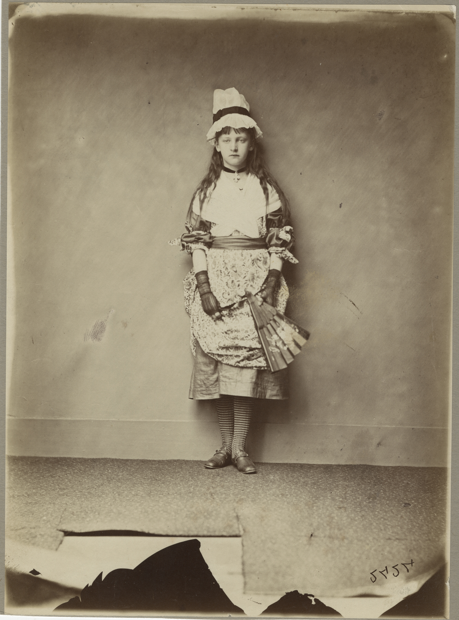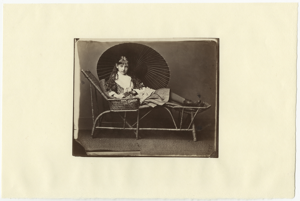 November 8, 2013, Filed Under: Art, Digital Collections, PhotographyFor his most famous child portrait, Charles Dodgson (aka Lewis Carroll) drew inspiration from an eighteenth-century painting The Ransom Center recently launched a new platform of digital collections on its website, which includes the Lewis Carroll (Charles Lutwidge Dodgson) photography collection. More than 50 items from that collection, including the portraits highlighted in this blog post, can be viewed on the new platform. Posing for the Rev. Charles L. Dodgson (1832–1898) for over a dozen years, Alexandra “Xie” Kitchin (1864–1925) grows up before our eyes through the series of portraits made of her during the 1860s and 1870s. Named after Princess (later Queen) Alexandra, who was a close friend of her mother, Xie (pronounced “Ecksy”) was the daughter of a clerical colleague of Dodgson’s at Christ Church College in Oxford. She began sitting for Dodgson’s tableaux at the early age of four, and, by at least one historian’s count, sat for him more than 50 times before she turned 16. Several other children—or “child-friends”—that Dodgson photographed were quickly bored with dressing up and sitting for long poses before the camera, but Xie participated well into her teens and is frequently referenced in the photographer’s diaries. Dodgson’s first, or “seated,” portrait of the costumed Xie is directly influenced by one of the greatest child portraits of the Georgian Era, Sir Joshua Reynolds’s painting of Penelope Boothby (1785–1791). Penelope, the only child and heir of Sir Brooke Boothby, the seventh baronet, and his wife, Susanna, was painted at the age of three in Reynolds’s London studio in July 1788. By all accounts, Reynolds enjoyed the company of small children as much as Dodgson and had a fine relationship with the young Penelope throughout their sessions. Art historians attribute the endearing quality of the painting to their brief but strong personal bond. Another factor contributing to the painting’s fame was the tragic fate of its sitter. Young Penelope would spend the remainder of her short life at the family estate at Ashbourne Hall in Derbyshire. She died apparently of encephalitis in 1791, a month before her sixth birthday. Her death led to the tragic collapse of her parents’ marriage. After the final breakup of the family estate, this most successful of Reynolds’s child portraits eventually found its way to the Ashmolean Museum in Oxford, where Dodgson undoubtedly fell under its spell a half century later. Dodgson posed a costumed but clearly older Xie in a position similar to the Reynolds painting. He also had her stand in costume for a second pose. For the final image from the series, he brought into his studio a wicker chaise and an Oriental parasol, had Xie remove her oversized “Mob-Cap” bonnet, and placed her in semi-recline in the chaise. The resulting tableau, an original Dodgson composition combined with Xie’s own studied gaze, would become one of the great child portraits of the Victorian Era. Dodgson, who gained early fame in mathematics and literature under the pen name of Lewis Carroll, remained an avid photographer for 25 years until abandoning the art in 1880. He retired from teaching the following year but stayed in Oxford, writing about mathematics until his death in 1898. Xie Kitchin published no memoirs or reminiscences of her friendship with Dodgson, but she would go on to marry and live in London until her death in 1925. Interestingly, the first of her six children was named Penelope. Click on the thumbnails below to view larger images. Penelope Boothby, aged 4, by Sir Joshua Reynolds Rev. Charles L. Dodgson. “Xie Kitchin as Penelope Boothby, standing.” 1875–1876. Rev. Charles L. Dodgson. “Xie Kitchin partly in the “Penelope Boothby” dress, on a garden chair, with Japanese sunshade.” 1875–1876. Rev. Charles L. Dodgson. “Xie Kitchin as Penelope Boothby”. 1875–1876.