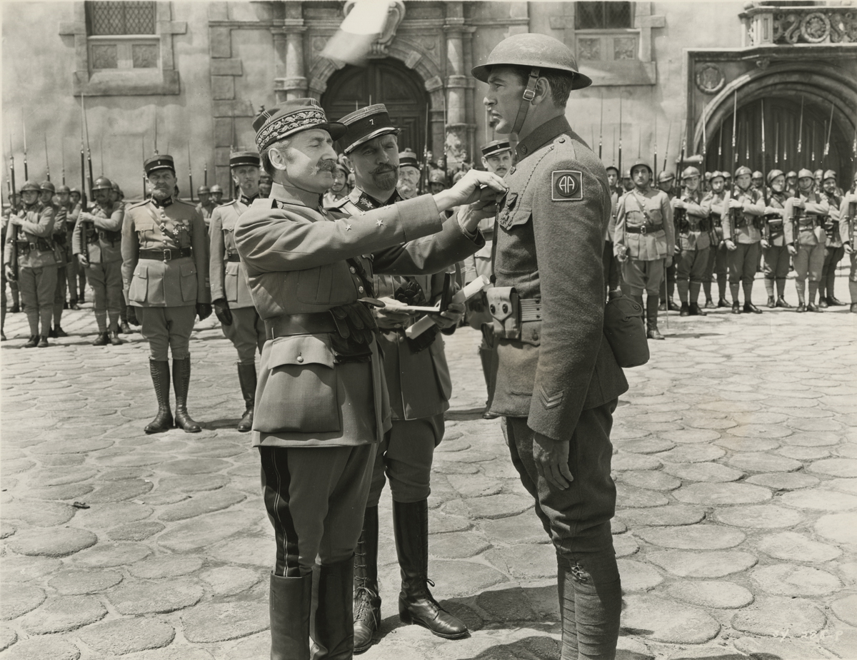 July 10, 2014, Filed Under: Exhibitions + Events, FilmCelebrating the films of the First World War The Harry Ransom Center’s current exhibition The World at War, 1914–1918 marks the centennial anniversary of the start of World War I. “The war to end all wars,” as it was optimistically dubbed, was one of the deadliest conflicts in history and paved the way for cultural and political change worldwide. This war, entrenched with heartbreak, heroes, villains, and camaraderie, inspired many stories both historical and fictional—some of which were captured for the silver screen. Some of these films, including Wings (1927), The Big Parade (1925), and Sergeant York (1941), are highlighted in the current exhibition and the ongoing World War I Film Series, co-sponsored by the Austin Film Society and the Paramount Theatre. Wings, released by Paramount Pictures in 1927, was filmed on location in San Antonio and was an homage to pilots of the First World War. The film tells the tale of two young fighter pilots who fall in love with the same woman. Hundreds of extras and some 300 pilots were involved in the filming, including pilots and planes of the United States Air Corps. It was directed by William “Wild Bill” Wellman, who had been both an ambulance driver and pilot during the war. Starlet Clara Bow played Mary Preston, an irresistible Red Cross ambulance driver. Though Bow, known largely for her flapper dresses and pearls, despised the army uniforms required for her role, the film was one of her most successful. Wings costume designer Edith Head commented: “It’s pretty hard to look sexy in a U.S. Army uniform, but Clara managed.” Wings went on to win the Academy Award for Best Picture at the first Academy Awards ceremony in 1929. A film still from Wings is on view in the galleries. King Vidor’s poignant and humanizing silent film The Big Parade follows the spoiled, lazy son of a wealthy family as he joins the army and proceeds to make a few friends and fall in love amid the hardships of war. The Big Parade portrayed the human costs of war and was influential in the creation of later war movies. Widely popular, the film earned MGM studios an almost instant profit of $3.4 million upon reception. Watch a screening of The Big Parade at the Paramount Theatre tomorrow at 7 p.m. as part of the World War I Film Series. Directed by Howard Hawks and starring Gary Cooper, Sergeant York is the true story of one of World War I’s most decorated soldiers, Alvin York. York was a hillbilly sharpshooter who, despite his misgivings and claims of being a pacifist, was drafted into the war and became a hero. Sergeant York was the top grossing film in 1941, and Cooper won the Academy Award for best actor. Warner Brothers is releasing these three films, along with Dawn Patrol, in the WWI Centennial Commemoration DVD set on July 22. Please click on thumbnails below to view larger images. Publicity still from “The Big Parade” (1925). Publicity still from “The Dawn Patrol” (1938). Publicity still of Clara Bow in “Wings” (1927). Publicity still from “Wings” (1927). Publicity still from “Sergeant York” (1941). Publicity still from “Sergeant York” (1941). Publicity still from “Sergeant York” (1941). Publicity still from “Sergeant York” (1941). Film still from “The Big Parade” (1925). Cover of a program for “The Big Parade” (1925).