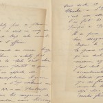 July 24, 2014, Filed Under: Exhibitions + Events, Meet the Staff, Research + TeachingMeet the Staff: French Collections Research Associate Elizabeth Garver Meet the Staff is a Q&A series on Cultural Compass that highlights the work, experience, and lives of people at the Ransom Center. Elizabeth Garver has held several positions at the Ransom Center since 2000, including graduate student intern, manuscript archivist, and in 2005–2006, she co-curated the Technologies of Writing exhibition. Currently, she works with the Ransom Center’s extensive French and Italian collections, and she is a co-curator of the current exhibition The World at War, 1914–1918. She speaks four languages—English, French, Italian, and Russian—and holds a variety of degrees, including a Master’s in Library and Information Science, a Diploma of Advanced Studies from the University of Paris, a Master of Arts in Nautical Archeology, and a Bachelor of Arts in Archeology. She is also a current Ph.D. candidate in Modern European History at The University of Texas at Austin. Why do you enjoy working at the Ransom Center? Well, this is my 14th year here, and almost every day I see something new that I’ve never seen before. I also like being able to do research, which is an opportunity you don’t get at a lot of jobs, and I like helping other people with their research and answering any questions they might have. The job is always changing and always interesting. Can you tell me a little bit about curating the current World War I exhibition? Jean Cannon and I were officially brought on board for the current exhibition about two years ago. She wrote her dissertation on the war poets, and I have an interest in the topic as a UT PhD student in Modern History, so we both had some expertise. There was a lot of reading on our own, but it was also looking into the collections in depth, and since there isn’t a single World War I collection to draw upon, it was basically like a treasure hunt. Then, when you find the treasures, there is a choice to make because the space is not infinite. Is there a “one that got away” item that was cut from the current exhibition for space that you wish could have been included? Yes, actually there are a couple, but there’s a really touching letter that holds an interest for me in the Édoard Dujardin collection. He was a French writer, and he had a mistress named Madeleine Boisguillaume who wrote him a letter toward the beginning of the war about the conditions in the West of France. All of the doctors were gone because they were at the front, and there was no one to help women to deliver babies and things like that. There were only old men left, old doctors who couldn’t travel, and no hospital in the town. Because of this, she said women and children were dying in childbirth. It’s really emotional and also gives an interesting perspective. People don’t usually think about the women’s experiences during the war. What has visitor response been like for the exhibition? I think visitor response has been very positive. It’s a response that I don’t think many exhibitions get, where people have their own stories to tell. Quite a few people have been sharing stories about their families and what their grandparents did in the war, and it’s just been wonderful. I hear you speak French fluently. Do you have any chances to speak French around Austin? Yes, we have a French lunch once a week where we speak only French, and there’s actually a large French community here at The University of Texas and around Austin. It’s pretty amazing how often I hear French, and there are a lot of opportunities to speak it. There are groups and of course the French department, and there are always French movies. Also, when I communicate with scholars, I’m able to use a lot of French. I think that’s why my Italian and Russian kind of fell by the wayside. I’m pretty devoted to this language. What do you like to do in your free time? I do a lot of gardening, and I love baseball. My family and I are pretty hardcore baseball fans—I grew up with it and I watched my brothers play. The season is over now, but I’ve had season tickets to the Longhorns for probably around 10 years. Otherwise, I do a lot of reading (although I feel like lately I’ve only been reading about the war for this exhibition), and I really enjoy cooking, especially French food. Do you have a favorite piece or collection at the Ransom Center? Obviously the French collections are amazing, but my favorite piece changes every once in awhile. Currently, I think my favorite item in the collections is the manuscript for The Little Prince by Antoine de Saint-Exupéry with his annotations and drawings. We also have some of his artwork, which is all amazing. Photo of Elizabeth Garver by Pete Smith. Visitors in “The World at War, 1914-1918,” exhibition. Photo by Pete Smith. Madeleine Lelong’s (née Boisguillaume) June 16, 1915, letter to Edouard Dujardin. Madeleine Lelong’s (née Boisguillaume) June 16, 1915, letter to Edouard Dujardin. UFCU Disch-Falk field, home to the Texas Baseball team. Photo courtesy of Intercollegiate Athletics at The University of Texas at Austin. “On les aura!” [We’ll get them!] Abel Faivre (1867-1945). 1916. Lithograph.