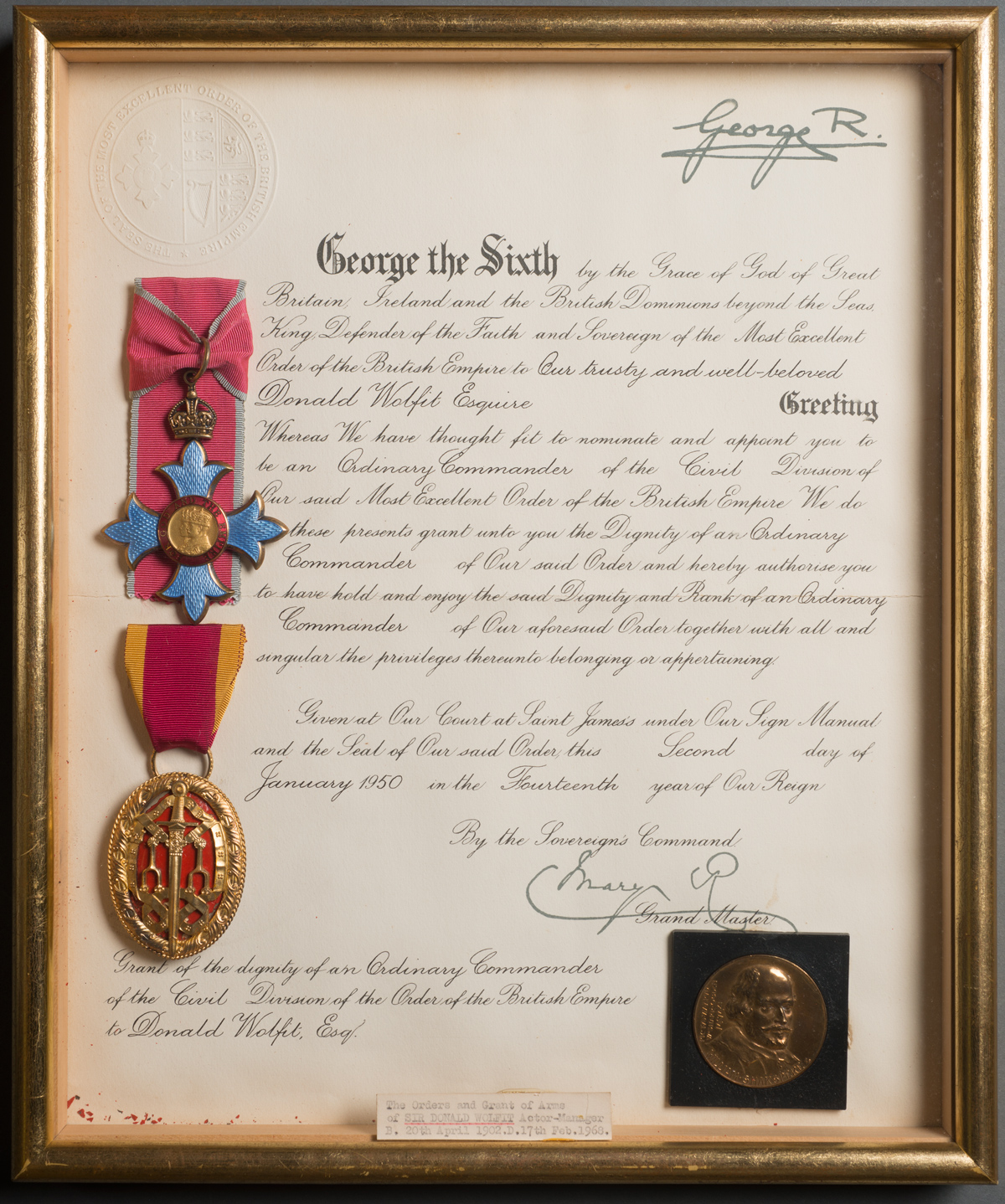 January 19, 2016, Filed Under: Research + TeachingFellow finds a kindred spirit in Shakespearean actor-manager Donald Wolfit Laurence Raw obtained a Fleur Cowles Fellowship to study at the Ransom Center in Spring 2011. He consulted the papers of British actor Donald Wolfit, which the Center acquired in the early 1990s. Comprising prompt books, stage plots, photographs, letters, diaries, and other ephemera, the Wolfit archive is the largest resource devoted to the actor anywhere. Raw is a professor of English at Baskent University, Ankara, Turkey. Following my research at the Ransom Center, I published my latest book, Theatre of the People: Donald Wolfit’s Shakespearean Productions 1937–53. The final product is the first biography of the great Shakespearean actor since Ronald Harwood’s work over 40 years ago. I consider Donald Wolfit a highly important figure in twentieth-century British social and theatrical history. Wolfit not only toured Shakespeare around Britain and Europe during times of great stress, but he provided a valuable source of popular entertainment, bringing playgoers of all socio-economic backgrounds closer together in situations where community values assumed paramount significance in maintaining morale on the home front. Denied subsidies by the British government, Wolfit toured with his own money, and by doing so built up the kind of goodwill that was markedly absent from many rival touring ventures. Theatre of the People pays tribute to a man of indomitable spirit, someone whose energy and commitment outweighed any of his faults. Wolfit served as the inspiration for the character Sir in Ronald Harwood’s The Dresser, which was recently broadcast on BBC Two in Great Britain. A program for “Scenes from Shakespeare,” ca. 1944 Donald Wolfit Papers, Harry Ransom Center To me, this was a labor of love: The research took a long time, but as I worked I began to identify more and more with Wolfit himself as someone who never gave up despite all the physical and emotional obstacles in his way. The Ransom Center’s collections were remarkable for their comprehensiveness; not only did they offer a unique insight into Wolfit’s way of working, but an extensive collection of letters written and received by Wolfit offered me a way into understanding his complex character—at once dictatorial yet insecure, paternal yet self-willed, kind yet ruthless. Many of them had never been used before in any previous work on Wolfit. By having access to them, I believe that I had a better understanding of how he thought and felt. Donald Wolfit’s certification as Commander of the British Empire, 1950. Mixed media. Donald Wolfit Papers, Harry Ransom CenterIn recognition of his services to the theater and the nation, King George VI made Wolfit a Commander of the British Empire in 1950. Queen Elizabeth II knighted Wolfit in 1957. From a personal point of view, the work in the Ransom Center coupled with the writing of the book had a therapeutic function. I recently had a bout of serious illness, and Wolfit’s example of continuing to work in the face of extreme adversity helped carry me through the darkest moments. Hopefully readers of Theatre of the People will feel the same. Items from the Donald Wolfit papers at the Ransom Center, such as Rosalind Iden’s gown for Beatrice in the touring production of Much Ado About Nothing, are on display in our current exhibition, Shakespeare in Print and Performance. The Ransom Center screens Ronald Harwood’s The Dresser (1983) on Thursday, May 12, at 7 p.m., as part of its public programming related to the exhibition Shakespeare in Print and Performance.
