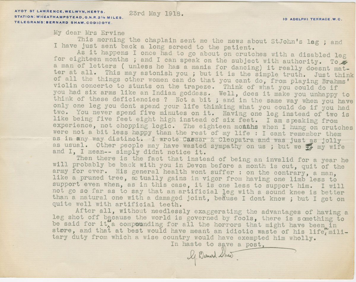 Letter from George Bernard Shaw to wife of St. John Ervine, May 23, 1918