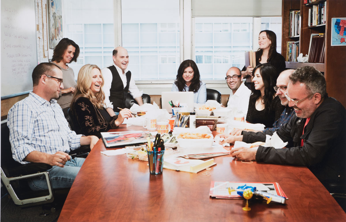 January 12, 2017, Filed Under: Film, Research + TeachingHow Mad Men‘s head of research mined the past for the show’s famous historical accuracy Kathryn Allison Mann was the head of research for the television series Mad Men. She mined period books, magazines, and newspapers—as well as her extensive network of New Yorkers—to ensure the historical accuracy the show is famous for. Much of Mann’s notes and original material is included in the show’s archive, recently acquired by the Ransom Center. The archive will be available for research once cataloged. “Mad Men” writers. Matthew Weiner is fourth from left. What did a normal day look like for you on set? A normal day could be so many different things. Let’s say a new draft of a script had been released. I went through it, page-by-page, investigating potential anachronisms or general errors. This could have been anything! Idioms or words that may not have been of the period were always on my radar. For example, if I saw in a draft that Roger Sterling says, “This ain’t my first rodeo,” I would think, “Hmm, I wonder when that expression came about?” I looked for references to it from the period and researched the etymology. “Oh,” I thought, “It turns out this expression didn’t enter our lexicon until the 1980s, allegedly coined by Joan Crawford.” I found and provided references from sources like the Oxford English Dictionary or slang etymology reference books. Sterling Cooper client references were verified. Let’s say that in the episode at hand, Don has a pitch with Jaguar or Howard Johnson’s. If it was a real company, Matthew Weiner wanted everything the characters say about the company’s product, problem or image to be based in reality. So with that in mind, I’d note any inconsistencies between the dialogue as scripted and the world as it was. This went for characters with skill-specific jobs too—lawyers, bankers or doctors who might appear in an episode. Let’s say Betty goes to see an oncologist. I made sure the doctor’s process is accurate medically and for the period, and that the dialogue is accurate. Sources for things like this were ideally professionals who actually worked in the field in the period. I had, for example, an oncologist contact with a great memory for how he practiced medicine in the 1960s. He’s still working too, so his mind’s still in it; he’s sharp. He provided invaluable explanations to me about all sorts of medical questions we had throughout the seasons. For general references to New York, like restaurants, movies and plays, I made sure any reference was accurate for the date of the episode—e.g. ensure that a certain movie was playing or that a certain play had opened, and where. The list of the types of things I looked for in the script goes on—essentially, anything and everything that had bearing on reality or the period. While I was focused on writing my research notes for a particular draft, sometimes the writers had a research question about a storyline idea they were mulling over for a future episode. In that case, I popped into the writers’ room to discuss it. But since that morning’s draft was the priority (priority determined by how close we were to shooting it), I might spend some time researching the writers’ question, if it was something I thought could be determined quickly. Otherwise, I saved the quest until research notes were completed for the script at hand. I might also have received a call from the art, prop or costume department with a question this day. Other departments did their own research too, but they came to me if they were having trouble tracking down a particular reference, or if they thought I might have research or photos in my files already about a specific topic. There might have also been a writer off “on script”—that is, a writer writing a first draft of an upcoming episode. I communicated with them about research questions that arose while they were writing. At the end of the day, I sent my research notes and references to the writers’ assistant, who transcribed Matthew’s re-writes of the episode later in the evening. The assistant went through my research and the notes from the writers (also given after every draft) with Matthew as he did his re-writes. Publicity image courtesy Lionsgate. This show is such a realistic testament to American culture of the 1960s. Were there any historical events or trends that you were particularly excited to research? The moon landing (and events—the launch!—leading up to it) was so fun to research and map out (I made a timeline for the writers to use as a guide for the episode). Watching all of Walter Cronkite’s reporting, minute by minute, was riveting. You could sense the excitement and the optimism, and the uncertainty of whether we’d succeed—and the national pride in our accomplishment when we did. It was all very palpable. Born decades later, I felt like I was able to experience the event as it unfolded. What kind of lead time were you provided to conduct research for episodes? This depended. With some research-related storylines, I knew as early as my first week back for the season, when Matthew expressed his vision for the season to writing staff. In those cases, I had plenty of time to start digging into a particular event or topic. Research came up at all stages though: as the writers were breaking individual episodes, once the outline was written, and as the actual script went through various phases. For some things (usually small details), I had as little as a day or an hour; with others (usually bigger storylines), I had months. Was there a process and/or approach you followed to execute the necessary research? Every quest required its own approach. Some things I had a specific process for, like researching language, or figuring out which movies were playing in New York City on a certain day (via archived issues of the New Yorker). More obscure