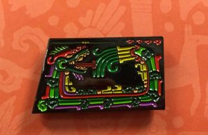 December 19, 2017, Filed Under: Exhibitions + Events, Featured1Ancient inspiration for a modern accessory The plumed serpent in Mexico Modern Mexican Folkways, edited by Frances Toor, volume 4, no. 3, 1928. Cover design by Diego Rivera. © 2017 Banco de México Diego Rivera Frida Kahlo Museums Trust, Mexico, D.F. / Artists Rights Society (ARS), New York The Ransom Center’s current exhibition Mexico Modern: Art, Commerce, and Cultural Exchange, 1920–1945 showcases Mexican art immediately following the Mexican Revolution to when it entered the American mainstream. Monte Monreal, Visitor Services Manager, was inspired by the plumed serpent and its connection to Mexico Modern when exploring merchandise for the exhibition, specifically creating a custom enamel pin. The pin, which features an image of a plumed serpent, is replicated from a bas-relief at the temple at Xochicalco. “We thought a glyph would be a good choice because so much of the Mexican moment is about evoking pre-Columbian identity,” says Monreal. The plumed serpent is a figure which appears abundantly throughout Mesoamerica, Quetzalcoatl being the most famous example. There are several connections to the plumed serpent in the exhibition, including Diego Rivera’s illustration for a cover of Mexican Folkways and handwritten drafts of D. H. Lawrence’s novel The Plumed Serpent. With a limited run of 250, the plumed serpent pin is available for purchase in the store for $10. The exhibition Mexico Modern: Art, Commerce, and Cultural Exchange, 1920–1945 closes January 1, 2018.