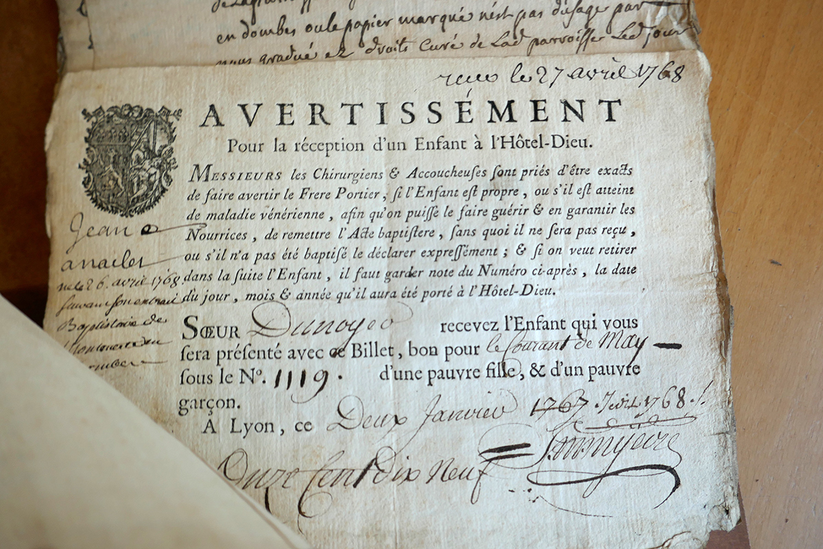 February 25, 2021, Filed Under: Books + Manuscripts, Featured1, Research + Teaching‘It looks like a garter to me’: Students, slow research, and the long history of young couples’ intimacy by JULIE HARDWICK This essay is part of a slow research series, What is Research? What can a pink silk ribbon with a beadwork message JE M’ELOIGNE SANS ME’EN SEPARER (translated, “I’m going away but not leaving you”) tell us about young people’s relationships in eighteenth-century French history? As an historian, I constantly ask questions like this: looking for neglected artifacts or fragmentary texts in special collections to think about the stories they might tell. I encountered the pink silk ribbon in 2009 in the municipal archives of Lyon, France’s second largest city. It was pinned to a “ticket” that recorded the admission of a tiny baby to the city’s foundling hospital in 1768. The ticket offered little information to provide me with research traction. The unnamed parents were poor and unmarried. The baby had been baptized, named Jean, and was two days old. A careful examination showed less immediately obvious but important clues about timing. The ticket arranging admission to the foundling hospital was dated four months before the baby’s birth. That indicated to me that the young couple had planned well ahead to resolve the problem their untimely pregnancy posed by leaving the baby at the foundling hospital. How can we recover the stories behind an object like this? The emotional and social lives of young working people have left little in the ways of the kinds of records that survive in enormous quantities for elites. My slow research—over 15 years and two continents in archives in France and libraries in the United States—involved unravelling layers of mysteries about the cataloging, the documents themselves, and occasionally a surviving artifact tucked in between sheets of paper. Seemingly simple objects, like the ribbon, offer a window into the past: what I research and what I teach. “Description de l’assemblée des sorciers qu’on appelle sabbat,” intaglio print, extracted from Laurent Bordelon, L’Histoire des imaginations extravagantes de Monsieur Oufle (Paris: Nicolas Gosselin and Charles le Clerc, 1710). Bound with Pierre de Lancre, Tableau de l’inconstance des mauuais anges et demons (Paris: Nicolas Buon, 1612). Harry Ransom Center Book Collection, BF 1565 L35 1612. Objects like the pink ribbon as well as books, pamphlets, and prints are those that I share with students when I bring classes to the Harry Ransom Center. Many people know the Ransom Center for its twentieth-century literature and artistic highlights, but in my courses, my students and I routinely visit to see, at times touch, and explore the wonderful holdings of sixteenth- and seventeenth-century materials. For instance, in my course on Witches, Workers, and Wives: gender and family in early modern Europe, we consider the relationship of gender to witchcraft and the many modern items that attest to the persistent fascination with witchcraft in the US and Europe. My students often ask questions that move beyond witchcraft to more mundane matters. Over many years their curiosity has influenced my own research and I have found answers even to questions that I used to think could not be answered. Did young single workers date? What did dating look like? Did they hook up? Why was illegitimacy so low if they were all having sex before they got married? My new book tries to answer many of these questions. Sex in an Old Regime City: Young Workers and Intimacy in France, 1660-1789 by Julie Hardwick was published last year by Oxford University Press. Fascinating material held at the Ransom Center attests to some of the tensions that are at the heart of young people’s relationships, and of my book, and with which my students are very familiar. “A late seventeenth- or eighteenth-century French print, “Opérateur céphalique,”” depicts a fictional blacksmith re-forging women’s severed heads to make them more malleable and pleasing wives. The scene had first appeared in an almanac in 1659, and it quickly inspired many standalone prints like the one at the Center, as well as rival illustrations where women attacked the blacksmith with his own tools. The powerful, if predictable, messaging about patriarchy and struggles against it fits perfectly into our usual paradigms of gender relations before modernity. Artist(s) unknown, Opérateur céphalique, after 1659. Intaglio print. French Prints Art Collection, 2020:0006:0001. Harry Ransom Center. Artist(s) unknown, Opérateur céphalique, after 1659. Intaglio print, verso. French Prints Art Collection, 2020:0006:0001. Harry Ransom Center. In contrast, the Center also holds a lovely little English playbook with an illustration that shows the ghost of a young man who had hung himself, driven to suicide by his despair over the break-up of a relationship with a young woman. This suggests a more complex dynamic. So which was it? William Sampson, The vow breaker. Or, the faire maide of Clifton (London: John Norton and Roger Ball, 1636), sig. A2r. Harry Ransom Center Book Collection, PR 2748 S2 V6 1636. My teaching and research at the Ransom Center links with backstories from the Lyon archives that illuminate the kinds of youthful relationships that lay behind the decision to charge a newborn to institutional care—often after having run a rollercoaster of emotions as the couple started going out, promised to marry, and began as was usual to have sex before the official ceremony. Young pregnant women sometimes filed paternity suits in court if their partners resisted marrying them. These legal records are full of evocative details about the usual course of young people’s intimacy. As they had no effective technology to prevent pregnancy, sexually active women usually became pregnant quickly. If couples for a variety of reasons did not marry, 