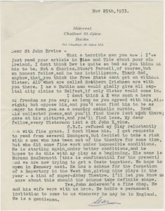 Letter from Sean O’Casey to St. John Ervine, November 25, 1933.