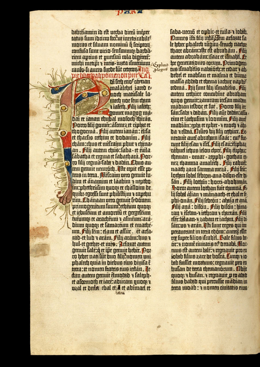 January 30, 2017, Filed Under: Books + Manuscripts, Exhibitions + Events“Hasty and exuberant” decoration in the Ransom Center’s Gutenberg Bible The Ransom Center’s two-volume Gutenberg Bible is on permanent display. Every few months the Center’s staff changes the opening, allowing visitors to see different pages and to protect the volumes from overexposure to light.