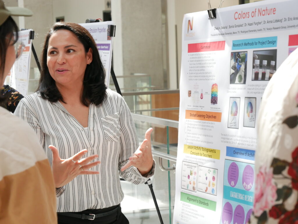RETs had opportunities to present around their scientific and curriculum development achievements via the final Poster Symposium highlighting both their curriculum ideas and scientific research. The event was held the final week of the program and RETs were encouraged to invite their teaching colleagues and school/district administrators to attend. The Symposium was held in the flagship Engineering and Education Building on the main UT campus and garnered a large internal and external audience with more than 70 people attending from UT Austin, local school districts, and local industry.
