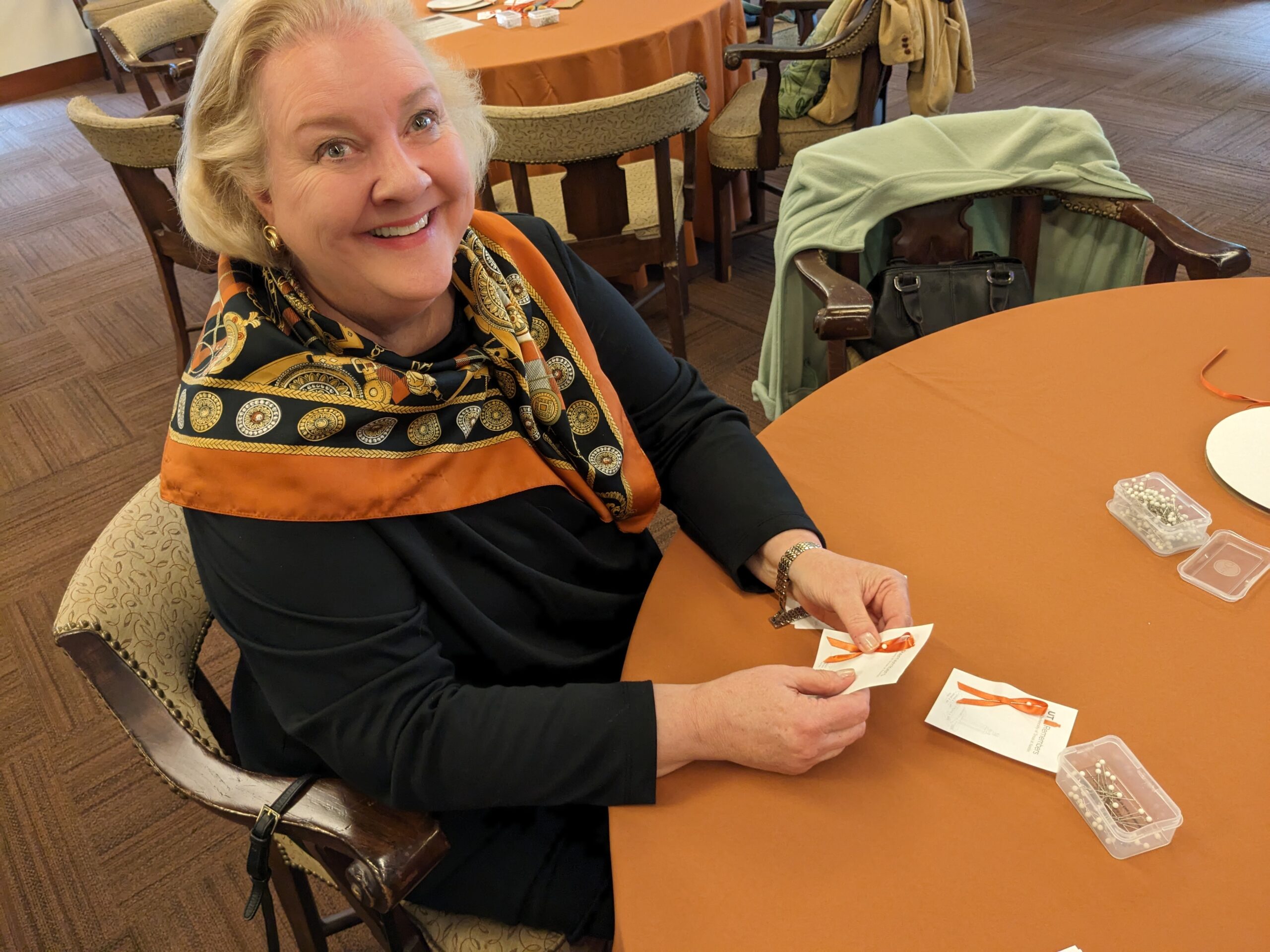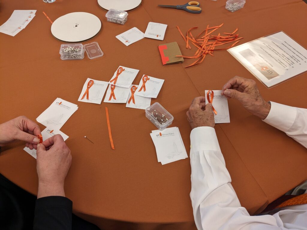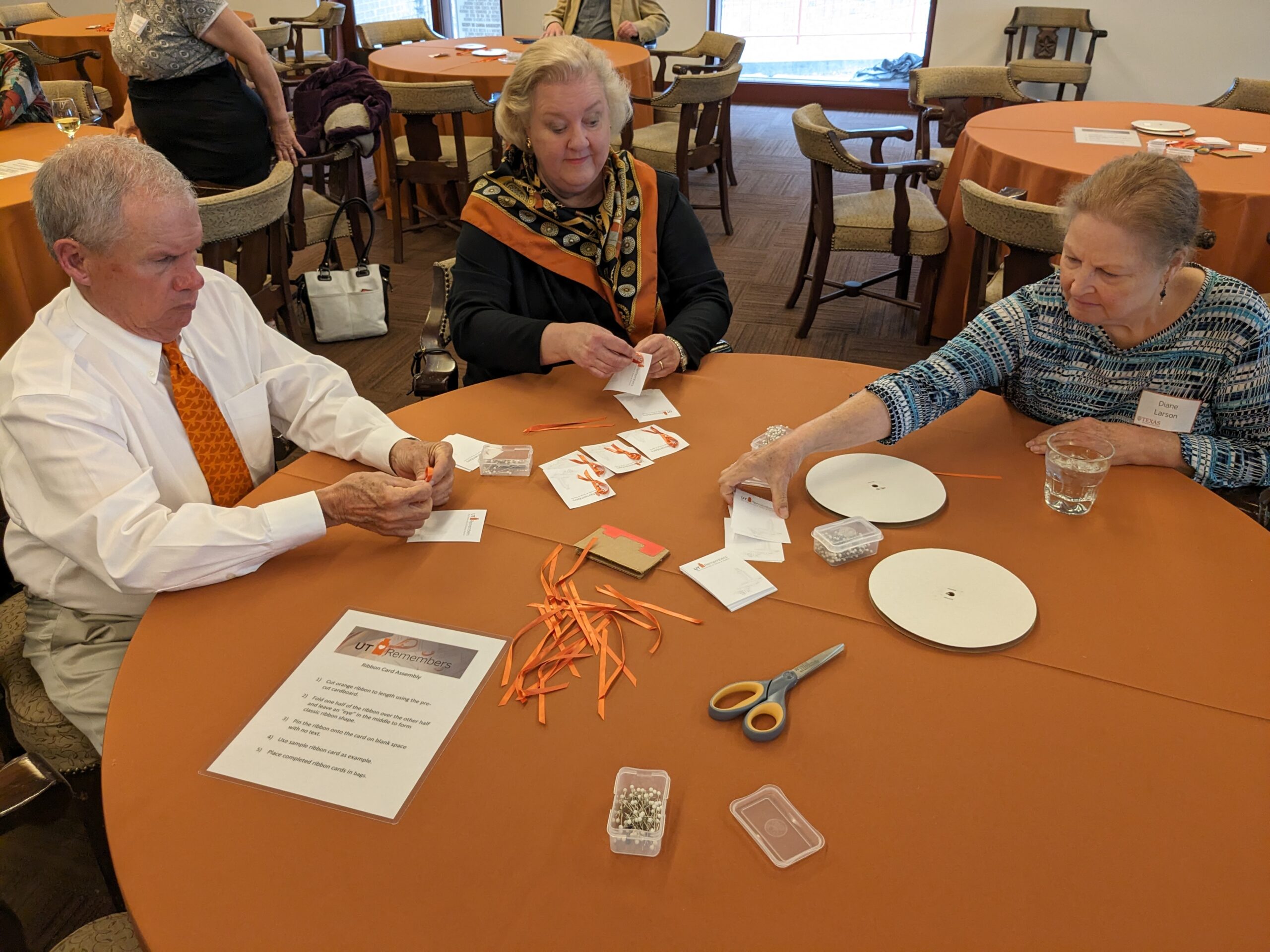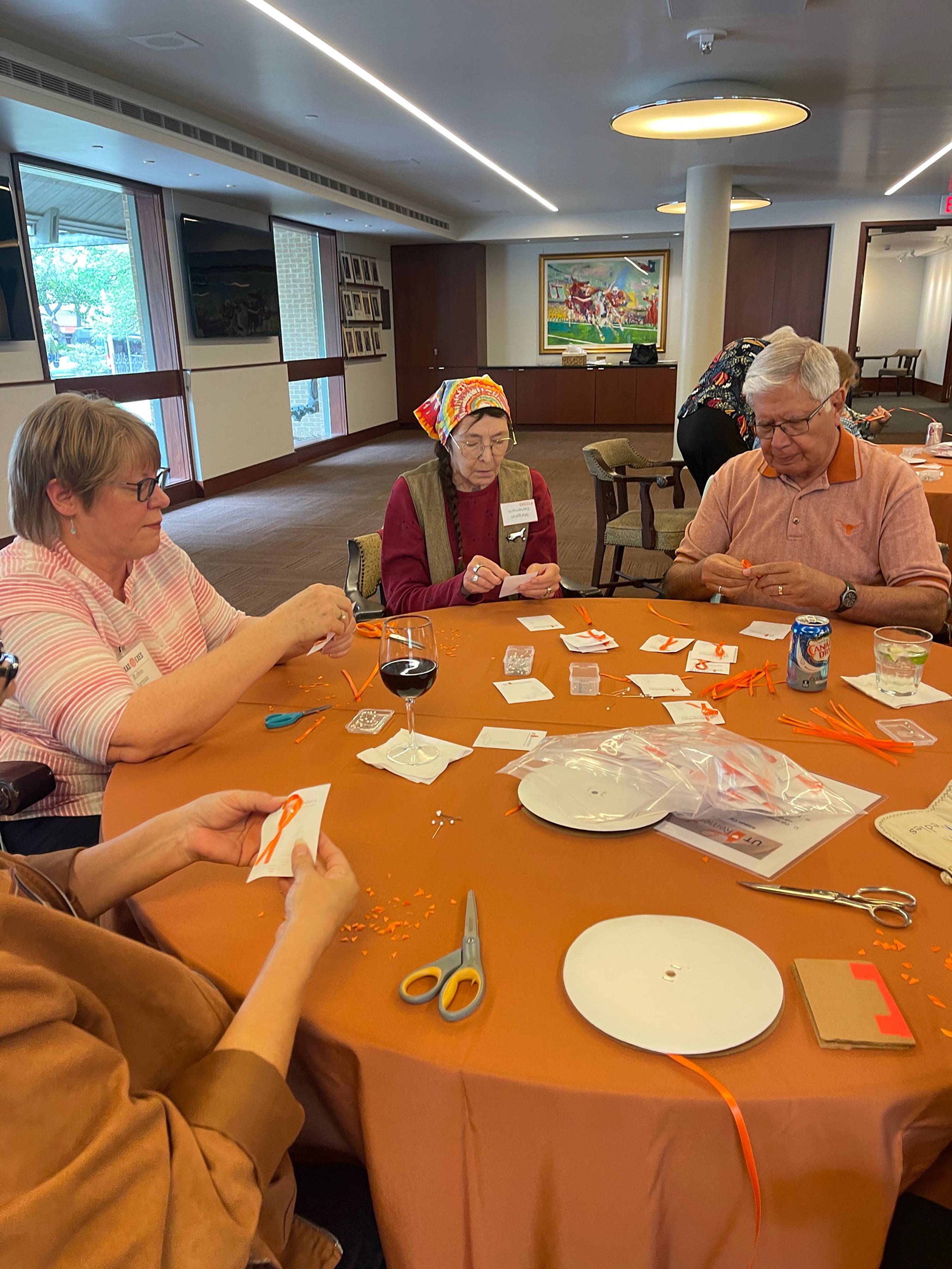 2024 – UT Remembers Lapel Ribbons March 20, 2024 – Peggy Mueller gathered RFSA members to create Orange Lapel Ribbons for UT Remembers. Lots of folks showed up and we got it done!