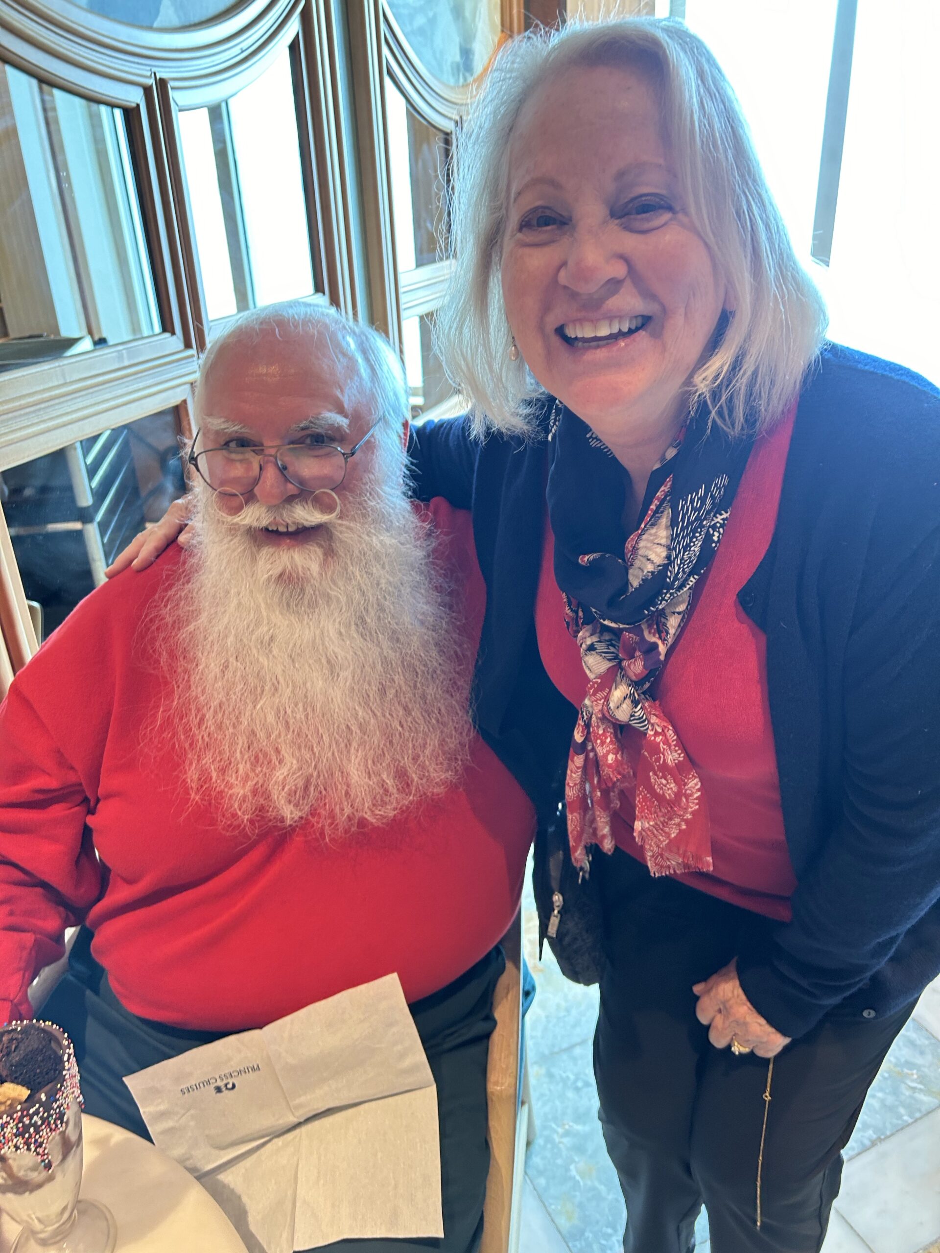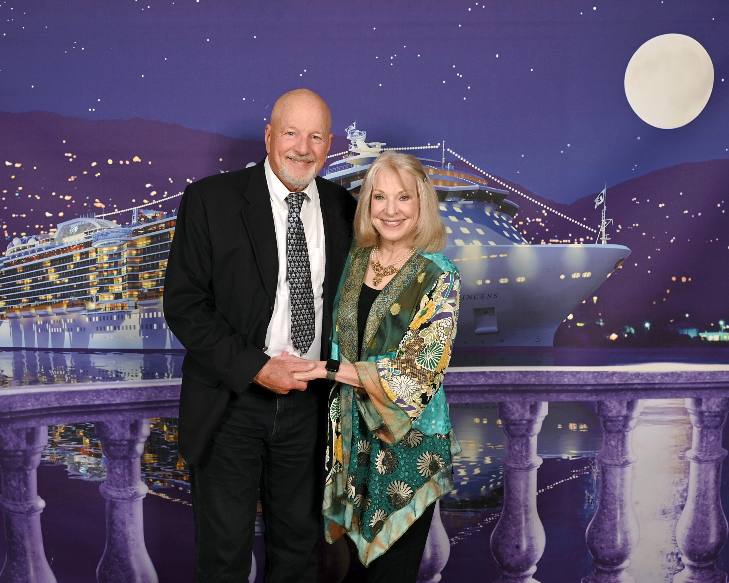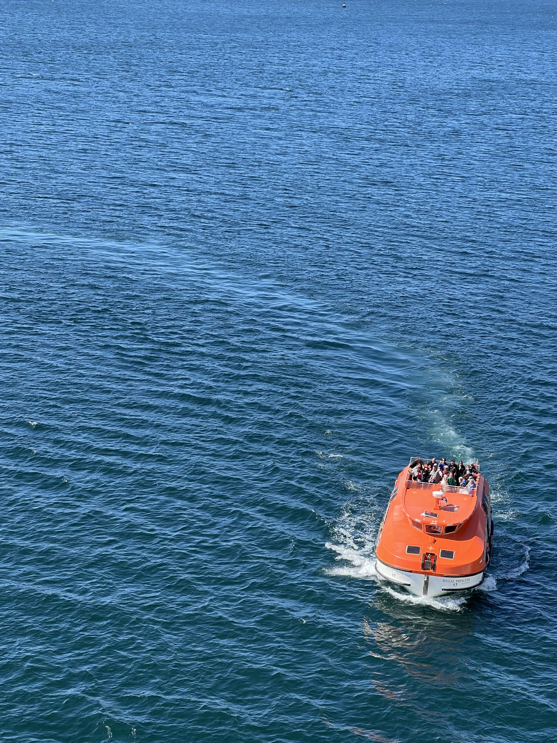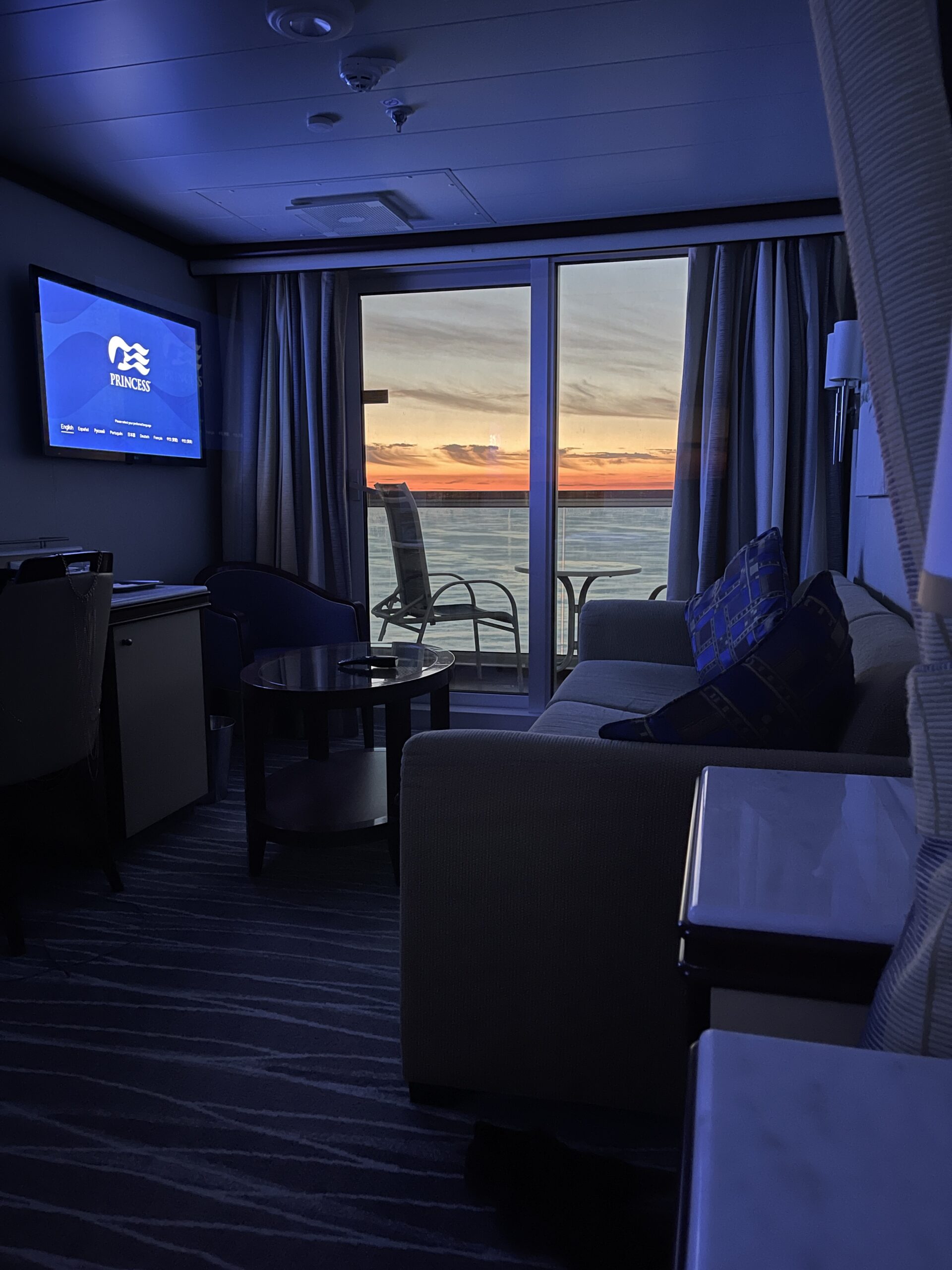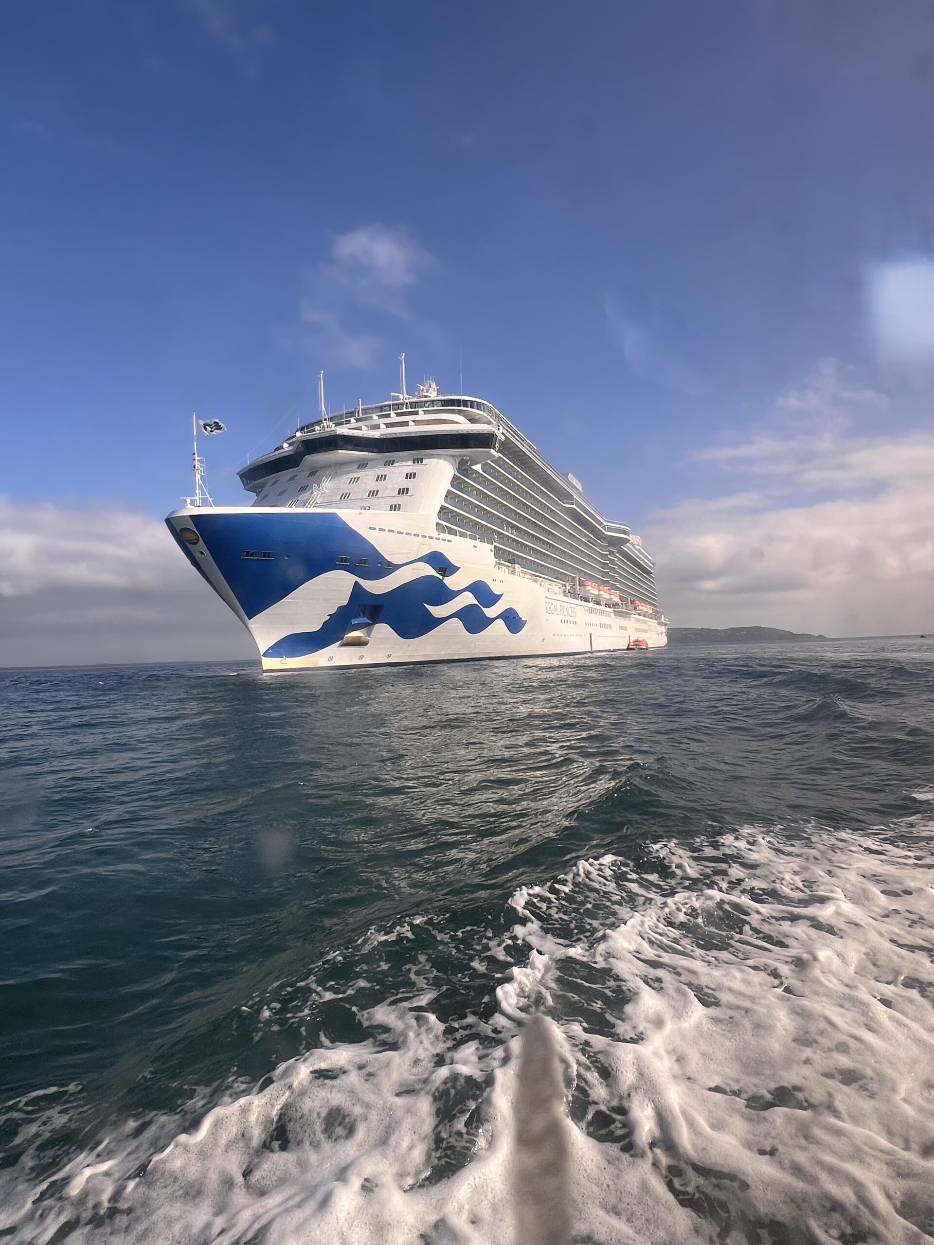 The Regal Princess has more than 1400 balconies, a glass-floor walkway extending 28 feet beyond the edge of the ship, fabulous sweeping views and holds 3560 guests and 1346 crew members. It was built in 2014. It includes 19 decks, 1780 guest cabins and was christened with the original cast of “The Love Boat”. It is 1083 feet long, 217 feet high and weighs 142,229 tons!