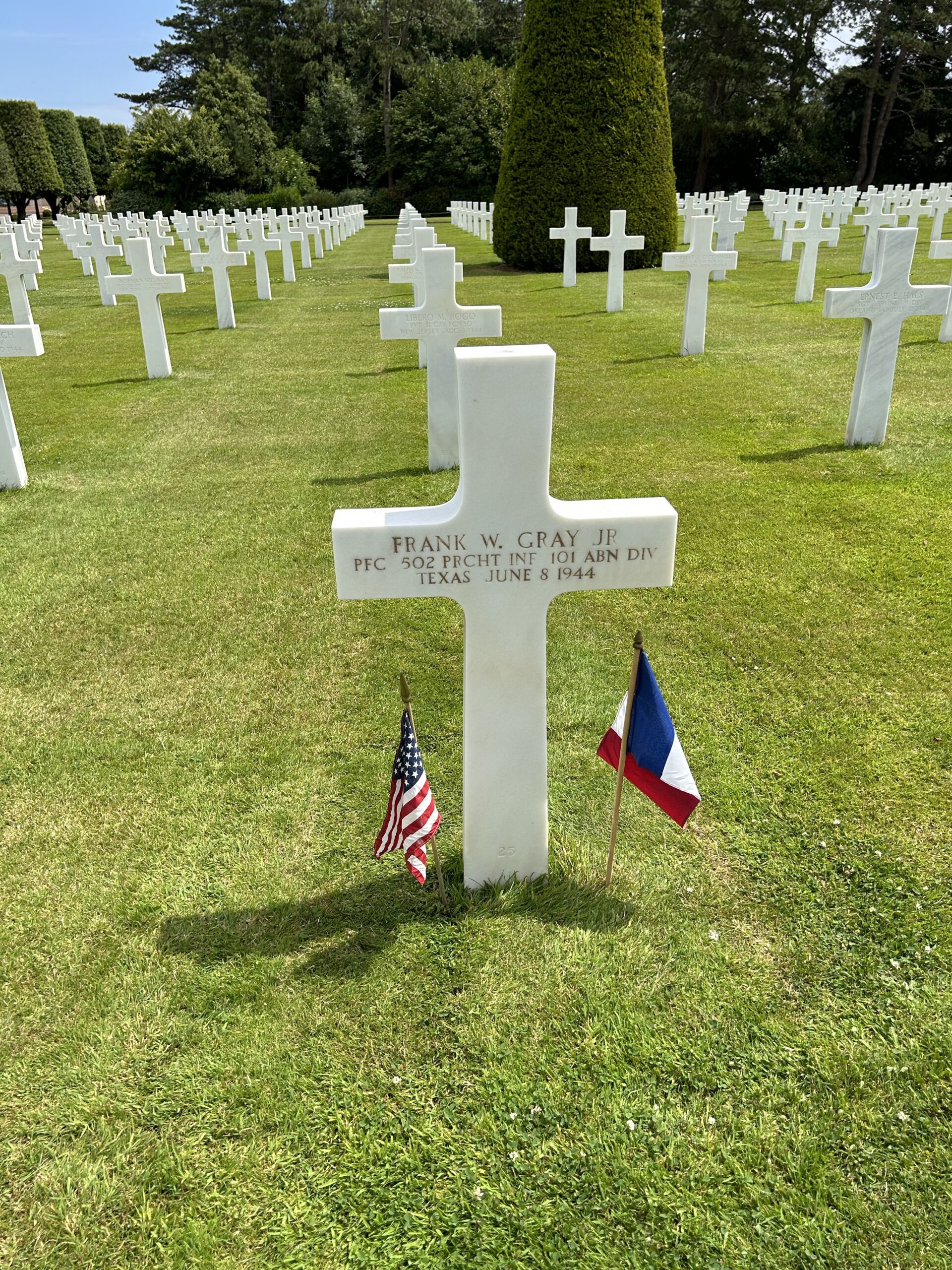 The Normandy American Cemetery and Memorial is a World War II cemetery in Collevill-sur-Mer, Normandy, France. It honors American troops who died in Europe during World War II.