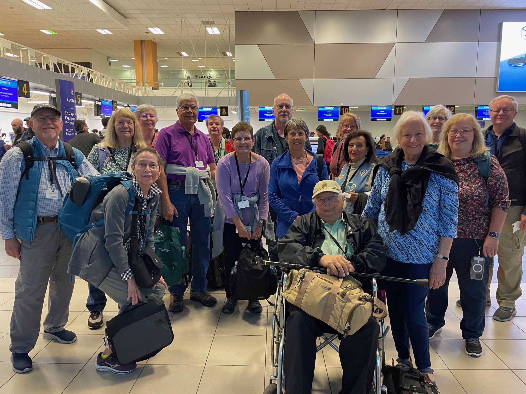 The Peru travelers enjoyed a pre-trip lunch at a Peruvian restaurant. 12 local travelers plus 4 non-attendees (from out of town)! They enjoyed trying out the cuisine and sitting in front of a mural of Lima, Peru!