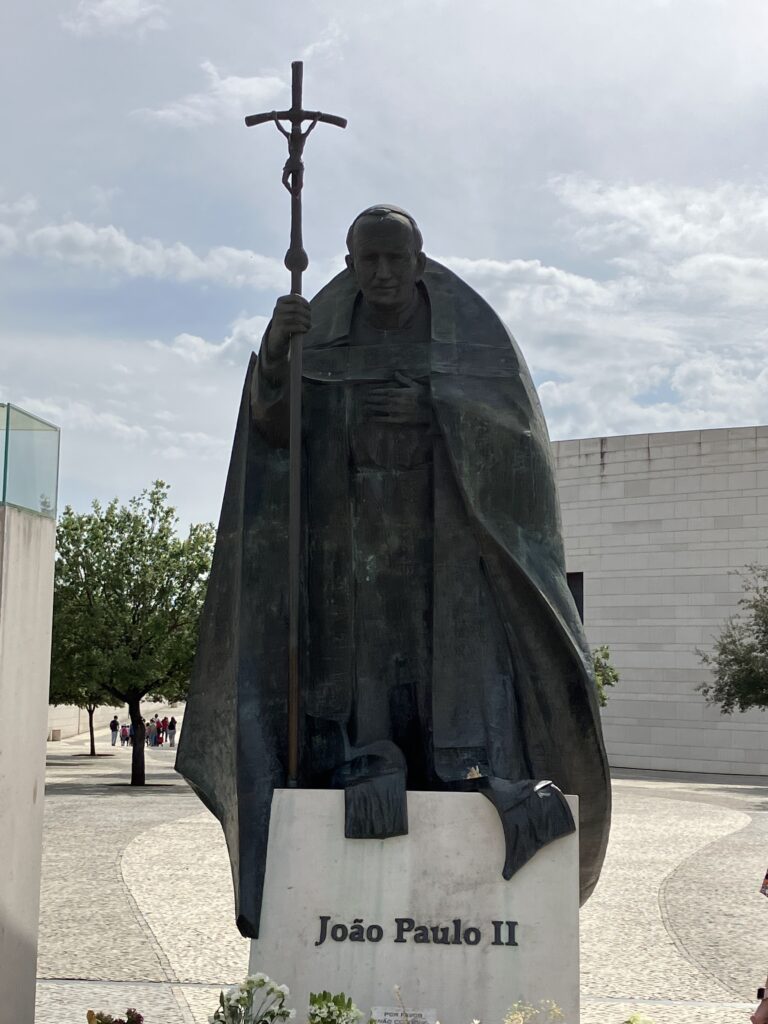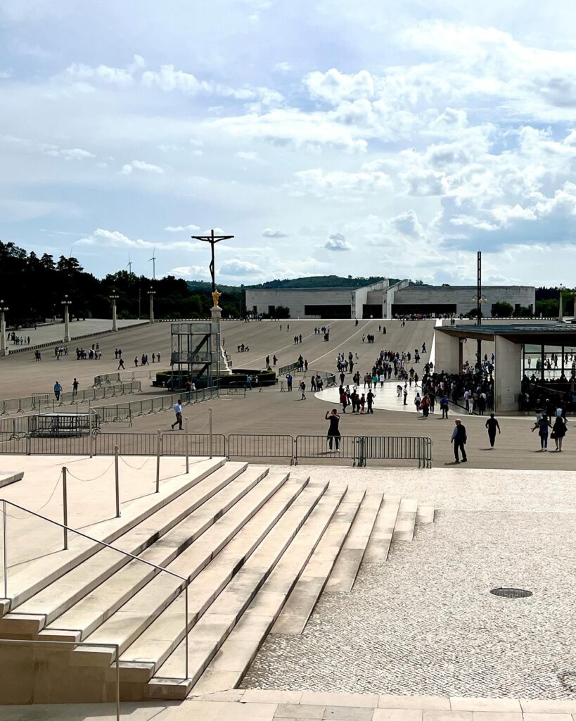 The Sanctuary of Fatima is a Marian shrine, which includes a group of Catholic religious buildings and structures with the Basilica of Our Lady of the Rosary as the main building. Some pilgrims crawl 600 feet from the Basilica of the Most Holy Trinity to the Chapel of Apparitions on their knees as an act of penance. Then they circle around the Chapel on their knees too, while praying. Was a sight to behold (Randy Wallace).