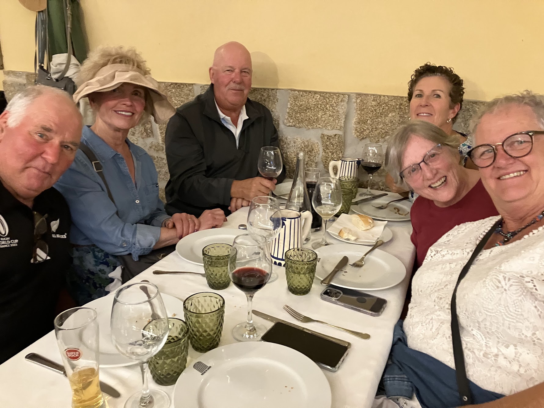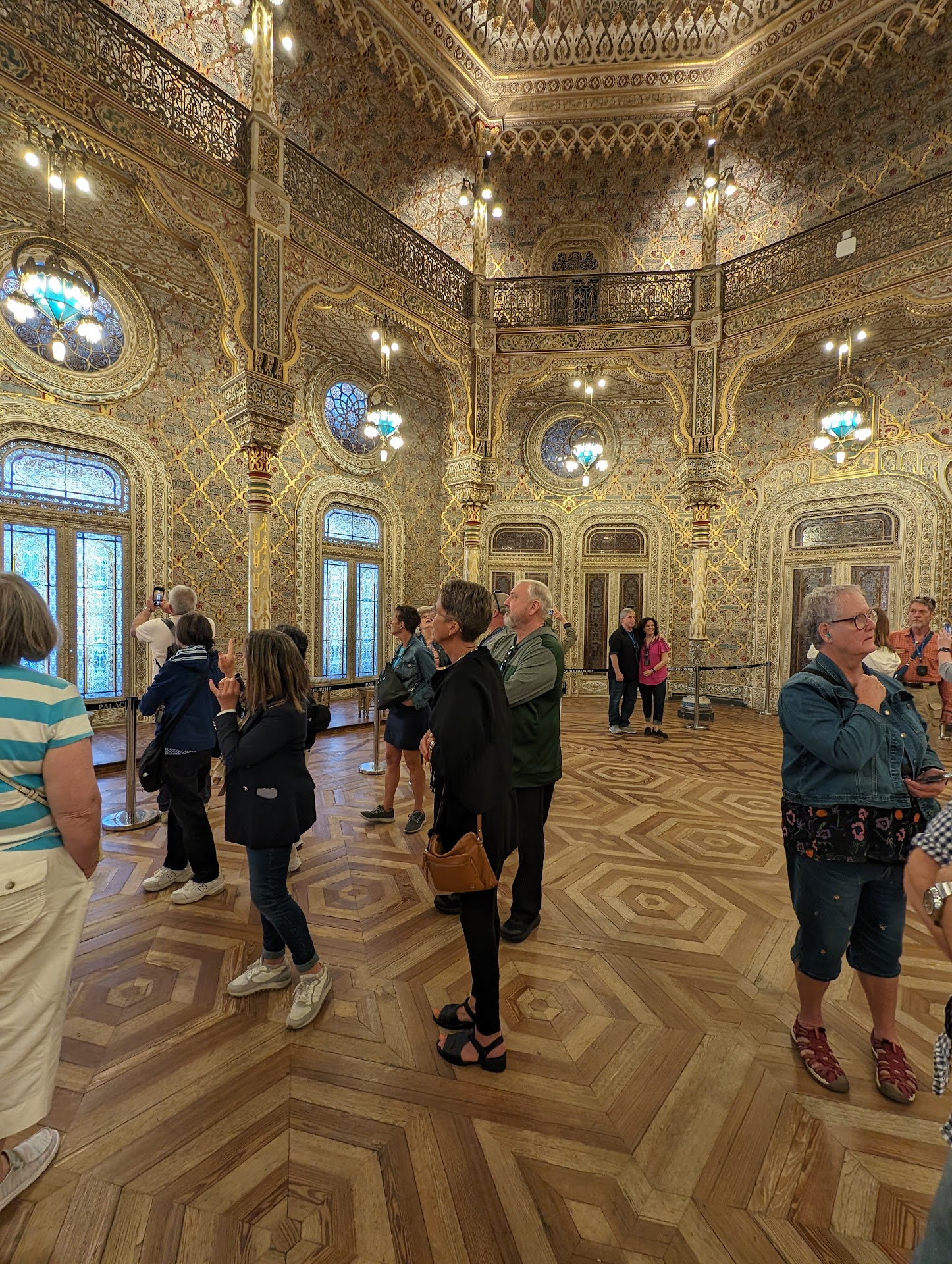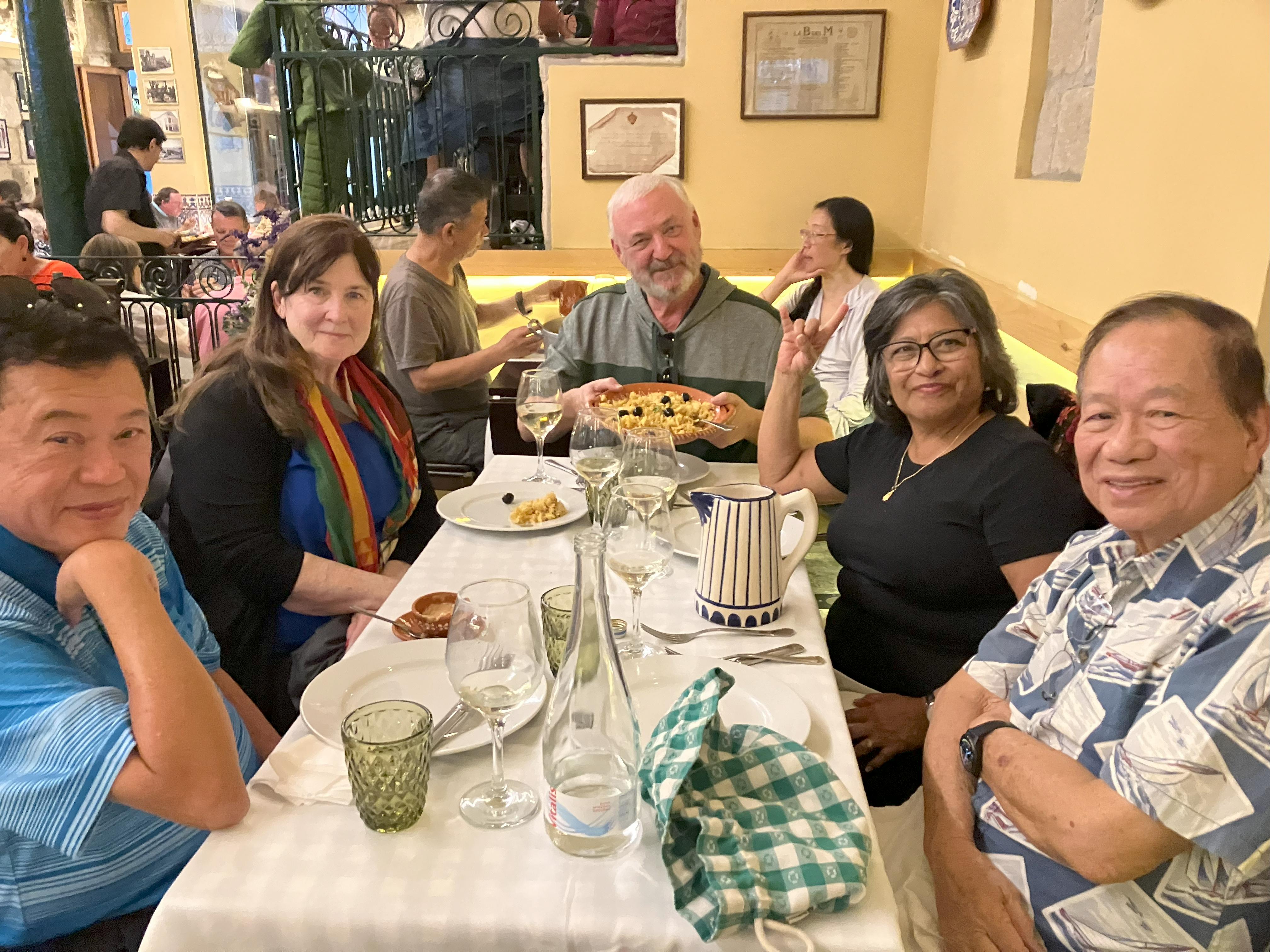 Unfortunately getting to Portugal took most of us two days, several of the group arrived on the third day. But everyone made it! We’ve been to Lisbon, next day enjoyed traveling to Obidos, Nazare (the famous beach town), saw Our Lady of Fatima and the modern basilica, then stayed in an elegant hotel in Tomar (Dos Templarios) with views of a castle and river. We visited the Knights of Templar convent (very very special). Went to University of Coimbra, oldest university in Europe, and we saw some students celebrating. Remember Harry Potter- this is JK Rowling inspiration (origin of the black capes and colored ribbons in Harry Potter – the ribbons indicate which school within the university). (Sybil and Keith Momii)